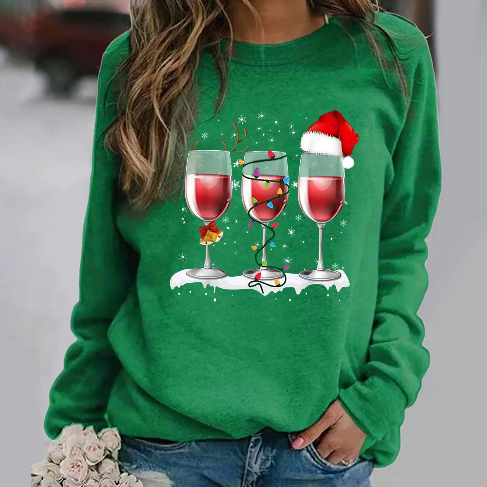 Женский свитшот с длинным рукавом, пуловер с круглым вырезом и принтом Винных Бокалов, 2020