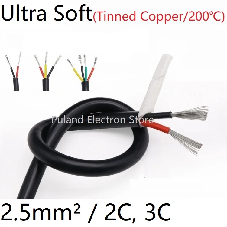 Квадратный 2,5 мм ультра мягкая оболочка провода 2 3 ядерный силиконовый резиновый кабель изолированный гибкий Медь высокое Температура Мощность линия черный