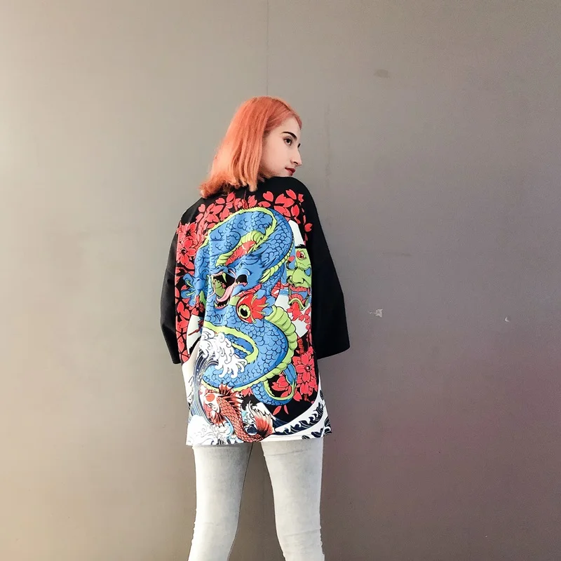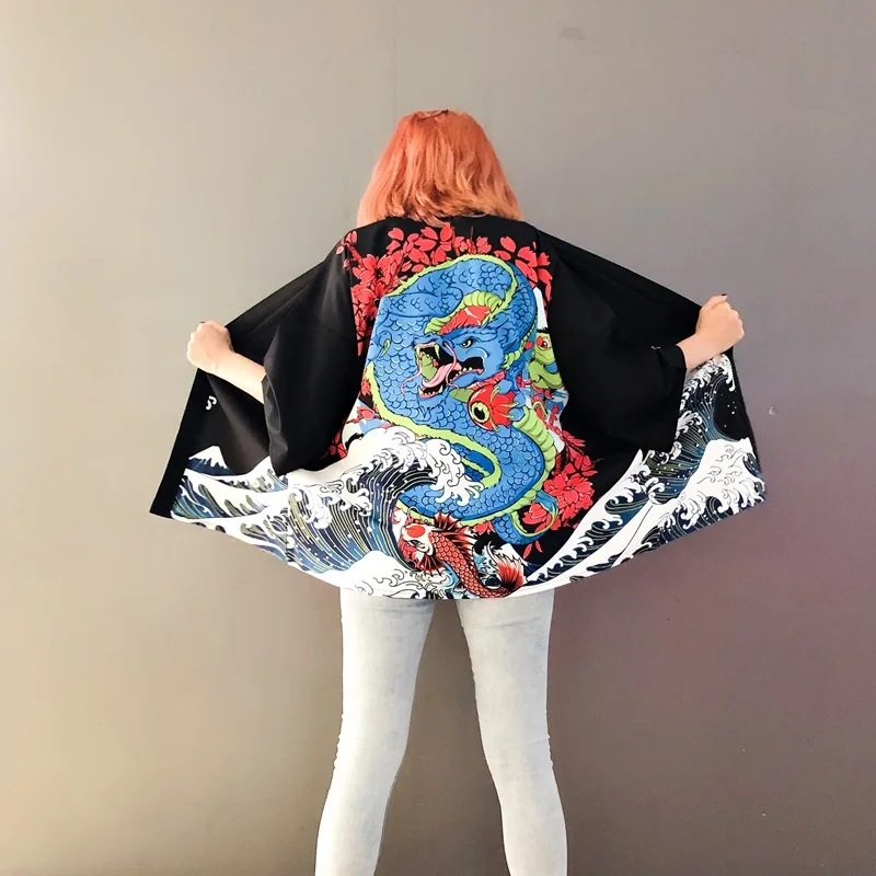 Кимоно женское в японском стиле юката, кардиган, хаори Японская уличная одежда, мягкая рубашка в стиле Харадзюку одежда с драконом, FF2006