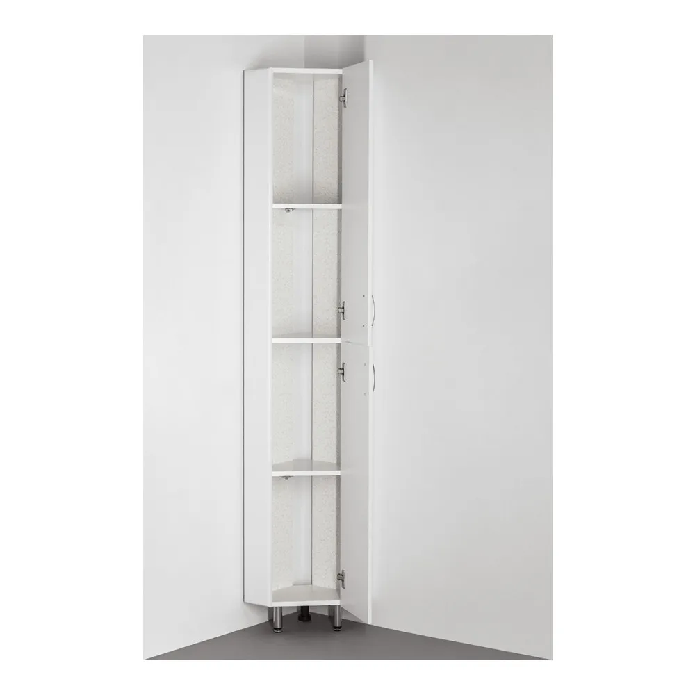 Коллекция: Эко Стандарт; Тип мебели: шкаф-пенал, шкаф; Ширина: 31.5 см; Глубина: 31.5 см; Артикул (код производителя): ЛС-00000113; Высота: 191 см; Установка шкафа: напольная; Угловая конструкция: да; Комплект ножек: да; Материал фасада: МДФ; Покрытие фасада: пленка; Поверхность фасада: глянцевая; Материал корпуса: ДСП; Покрытие корпуса: пленка; Поверхность корпуса: глянцевая; Система хранения: с дверками; Расположение петель: справа; Бельевая корзина: нет; Стиль: традиционный; Цвет фасада: белый; Цвет корпуса: белый; Цвет производителя: белый; Фурнитура: хром; Оснащение: полочки, механизм доводчика; Страна происхождения бренда: Россия; EAN: 4603720651895;