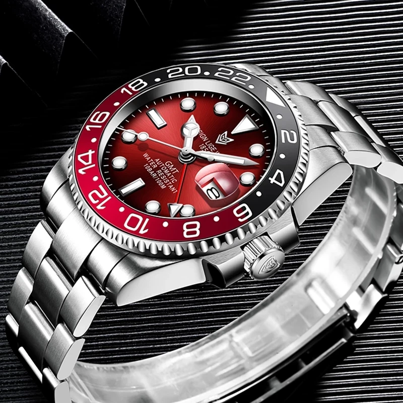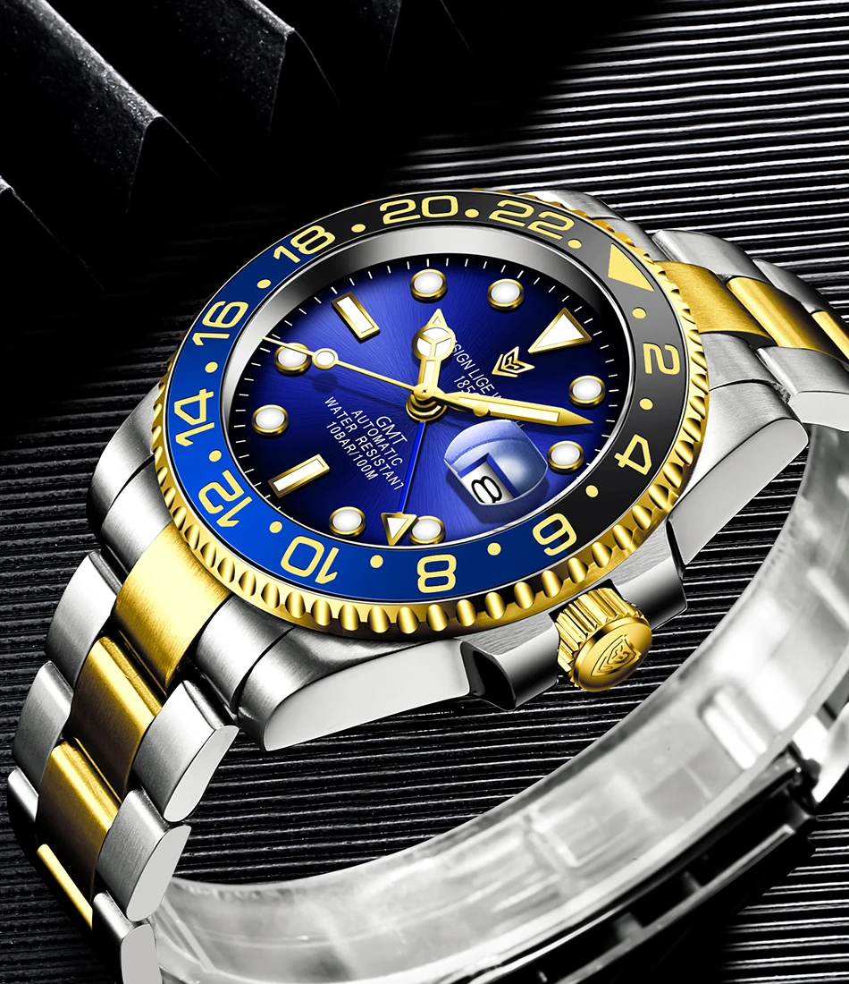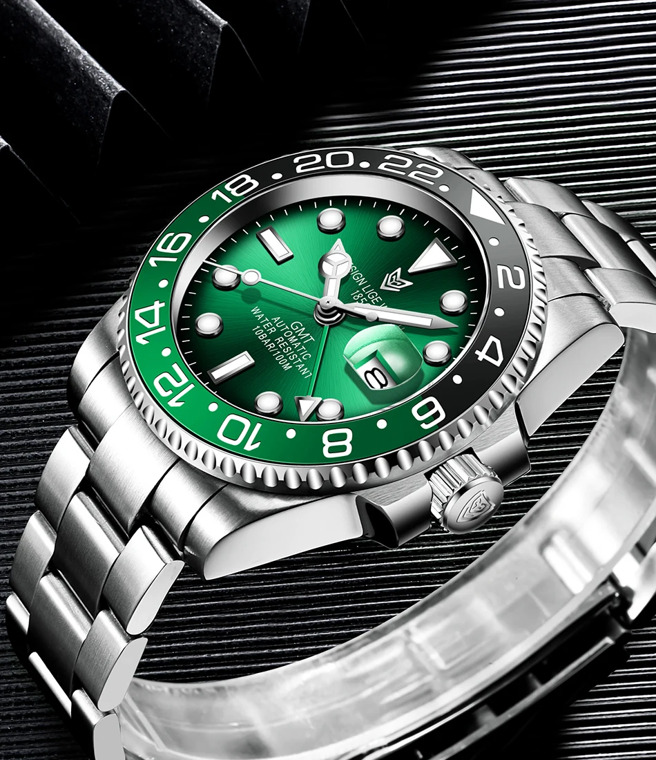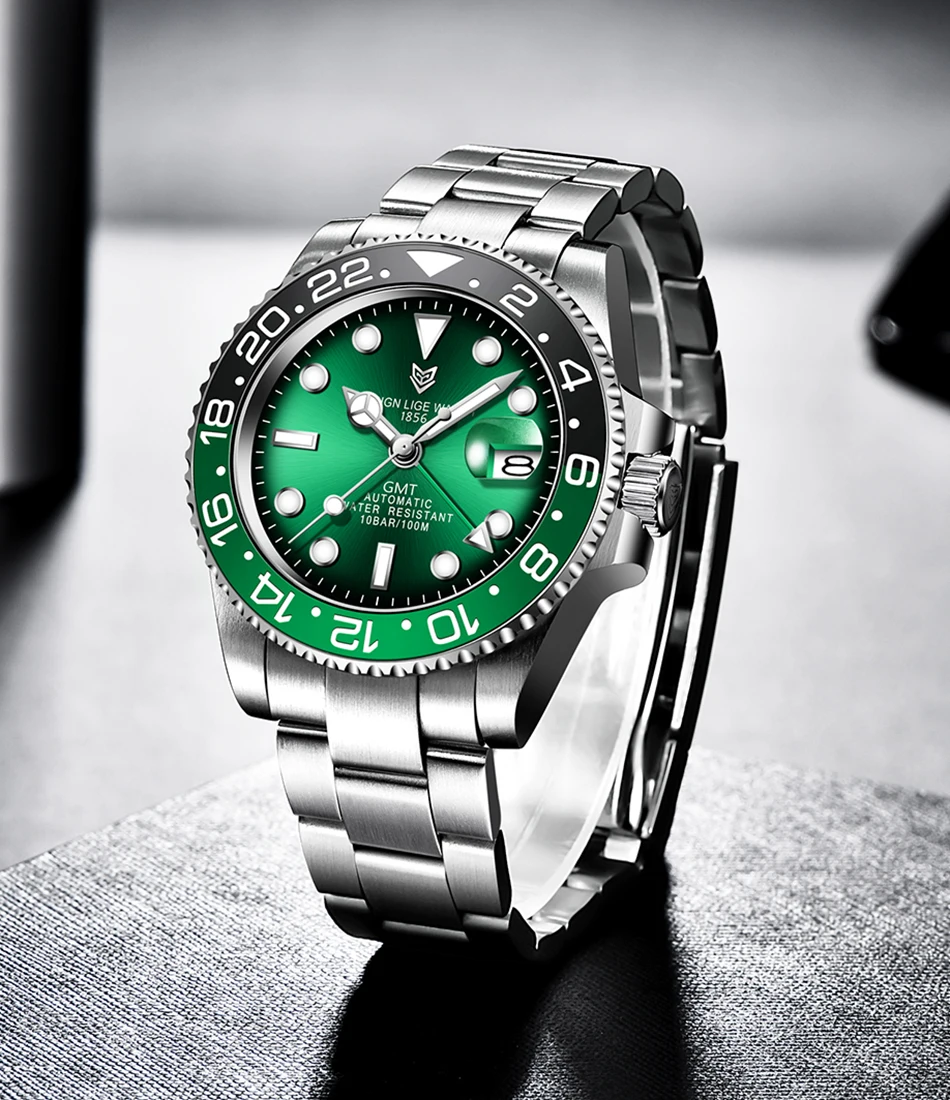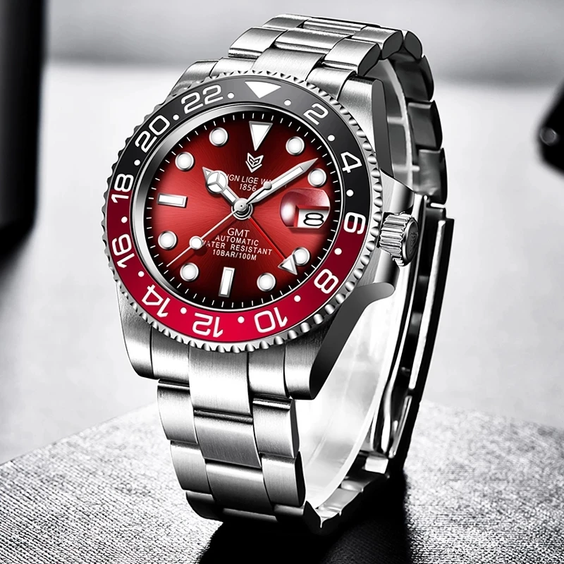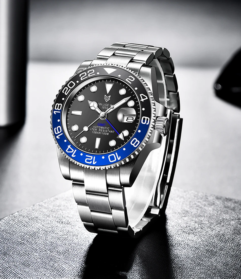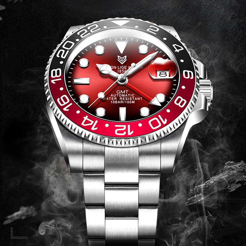 2022 Мужские автоматические механические часы LIGE GMT с керамической рамкой из нержавеющей стали 316L водонепроницаемые часы 100ATM часы с сапфировым стеклом