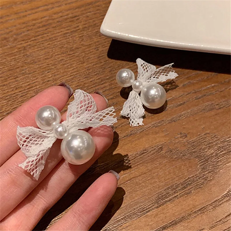 2021 шикарные кружевные серьги с бантом, жемчужные серьги, корейские темпераментные серьги, женские серьги, ювелирные изделия для женщин