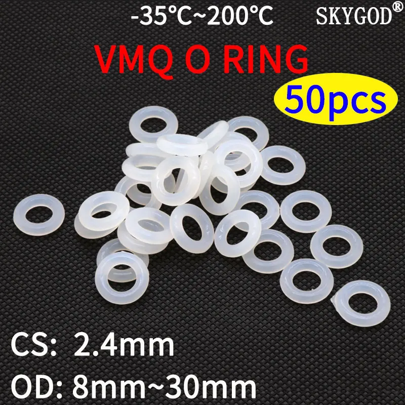 Уплотнительное кольцо VMQ, водонепроницаемая шайба круглой формы, 50 шт., толщина CS 2,4 мм, OD 8-30 мм