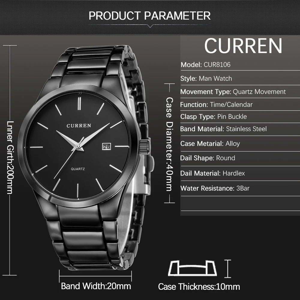 Часы CURREN Мужские кварцевые из нержавеющей стали, люксовые брендо...