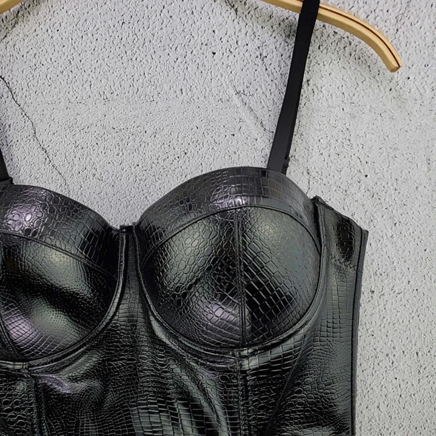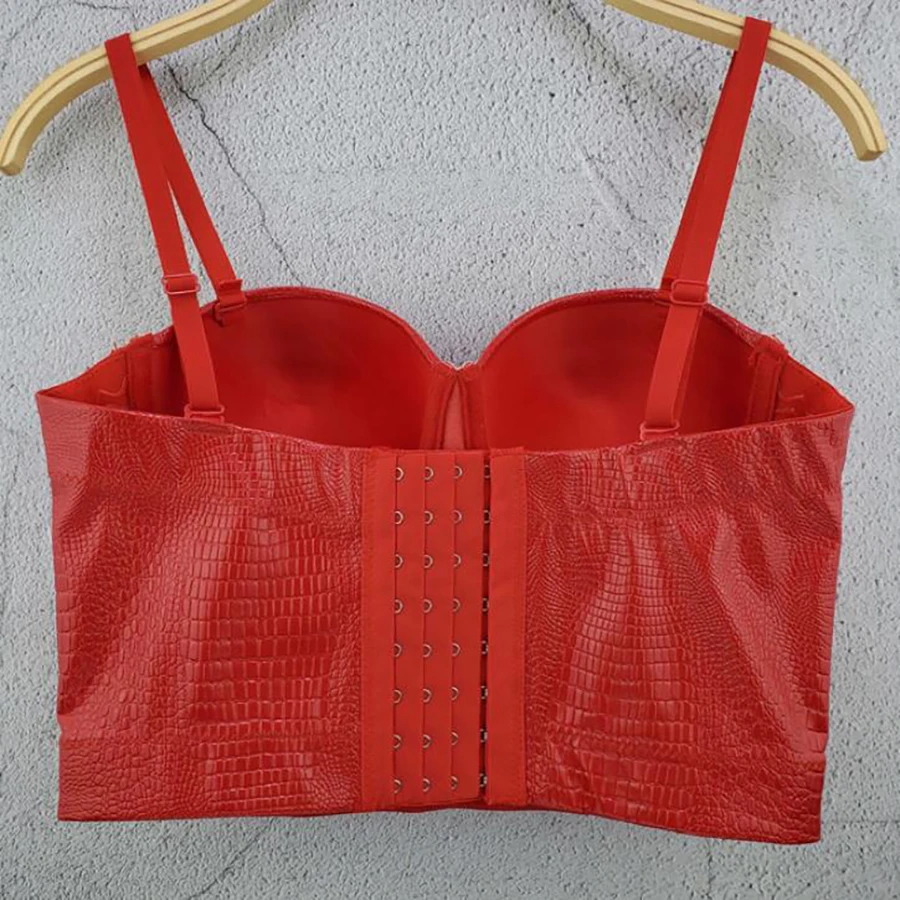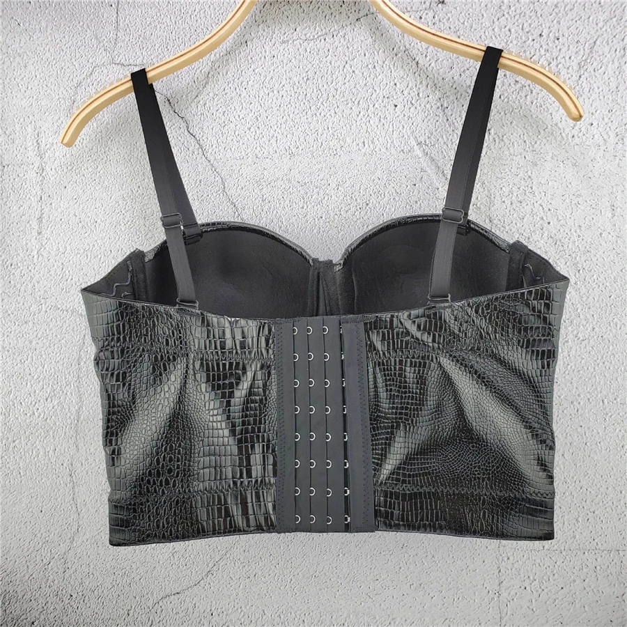 Женский бюстгальтер с чашками пуш-ап, из искусственной кожи
