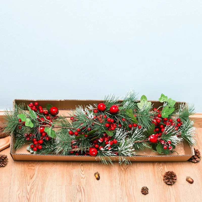62 см сосновые ветки дерева Снежинка PE ягодно красных фруктов Ягоды Искусственные Пены вишня домашнего вечерние Рождественская елка художественное оформление венка