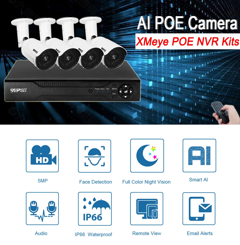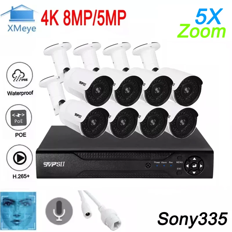 Белый 4K 8M 5MP Sony335 H.265 5X Zoom IP66 Металл ONVIF Обнаружение лица Аудио 8-канальный 8-канальный POE IP-камера видеонаблюдения DVR NVR Kits System