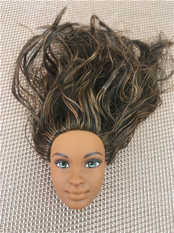 Красочные волосы кукольные головы черный Skintone качественная колл...