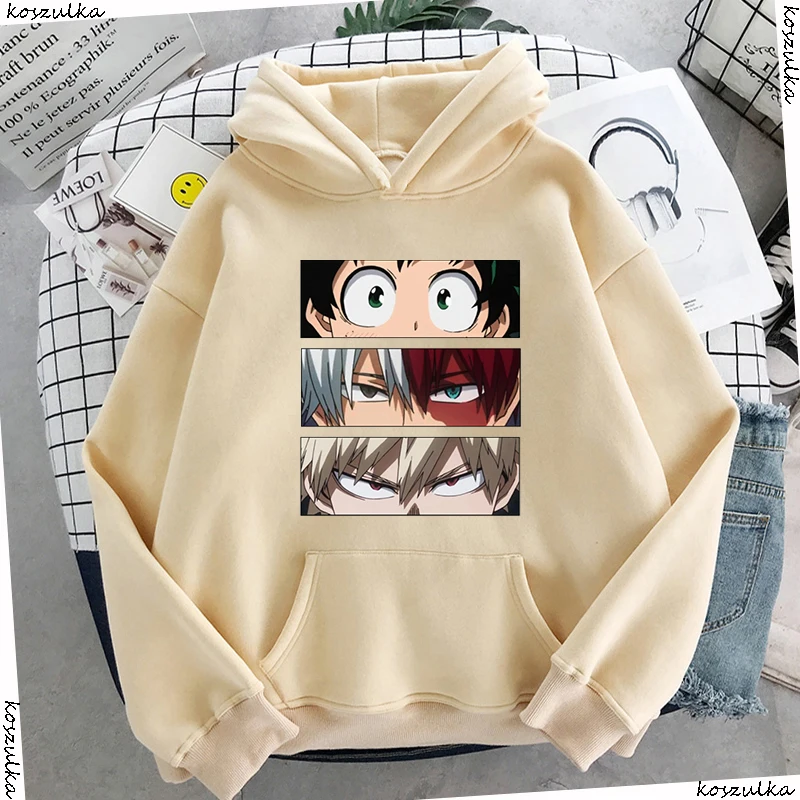 Женская толстовка с капюшоном My Hero академия, бежевый свитшот с капюшоном в стиле Харадзюку, удобная осенне-зимняя толстовка с аниме