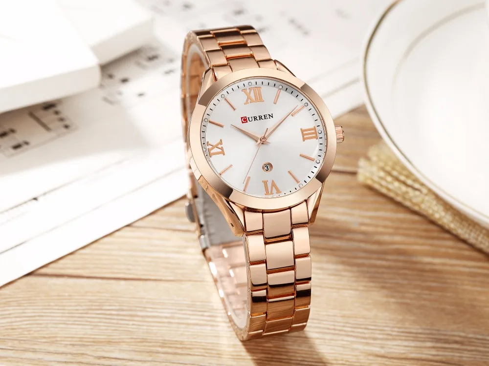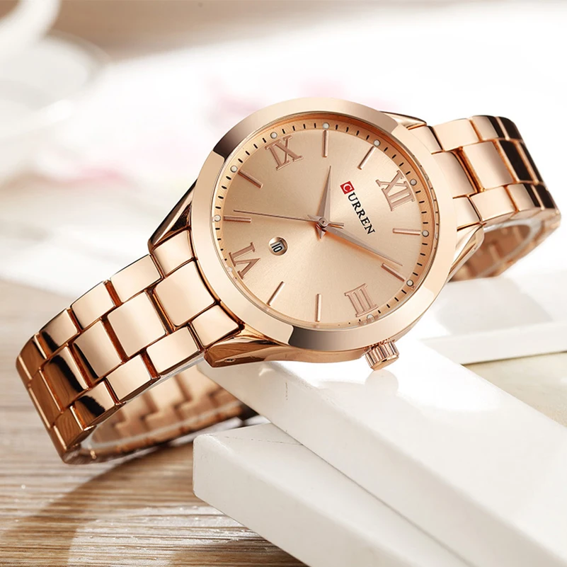 Женские кварцевые часы CURREN, розовое золото, Топ бренд, роскошные...