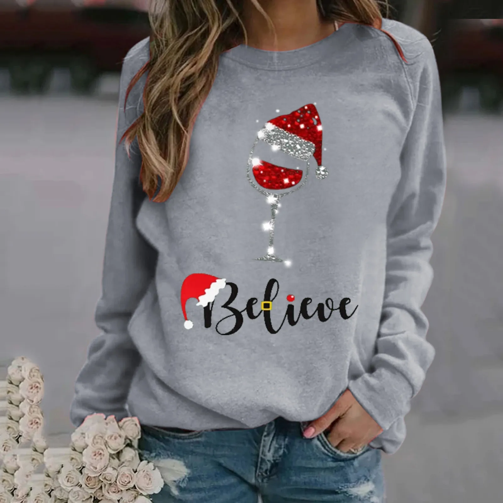 Женские толстовки 40 # принт с рождественским лосем, женские толсто...