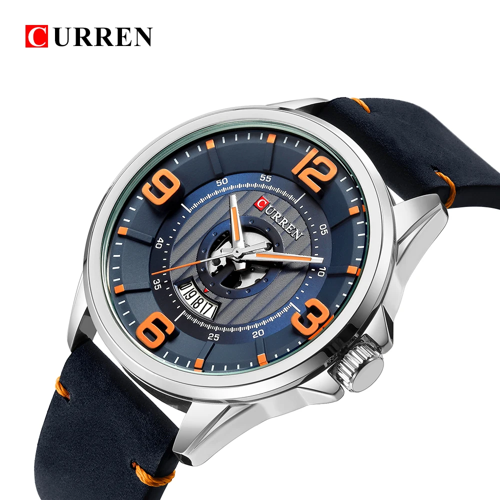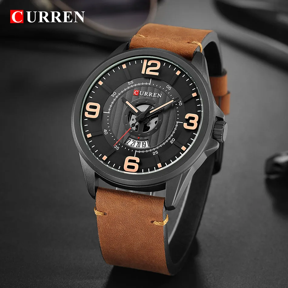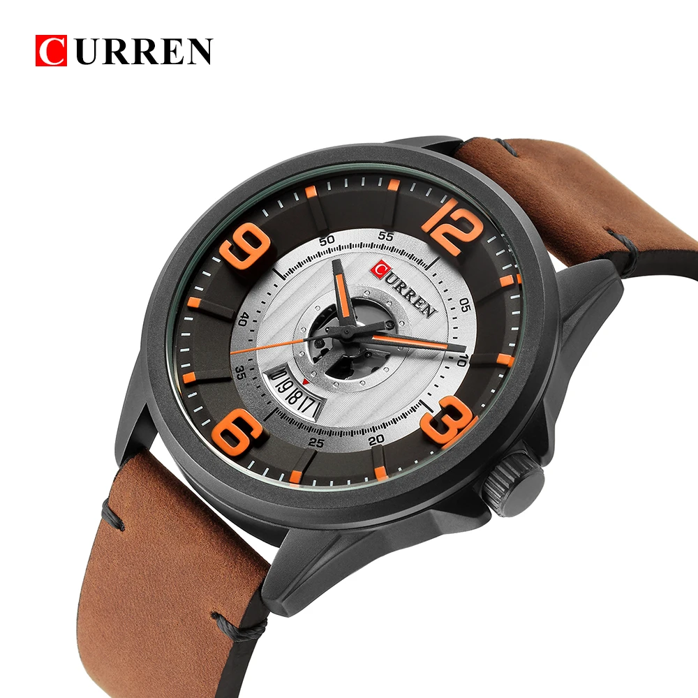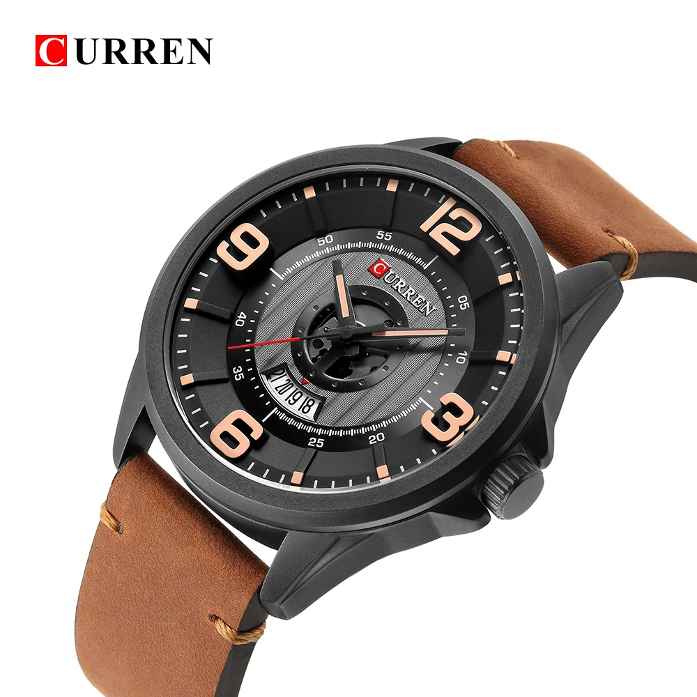 Часы наручные CURREN Мужские кварцевые, модные повседневные деловые, с кожаным ремешком, с отображением даты