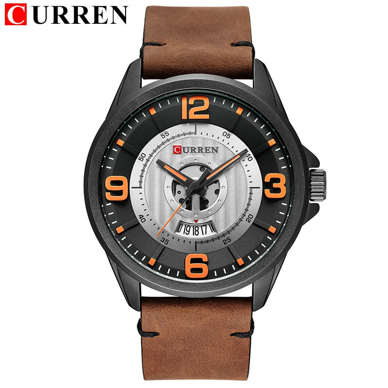Часы наручные CURREN Мужские кварцевые с кожаным ремешком, 2018