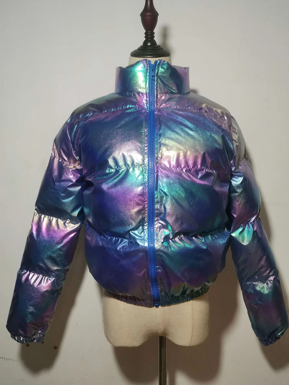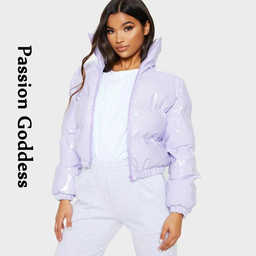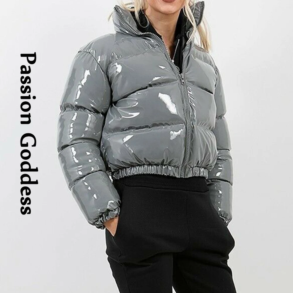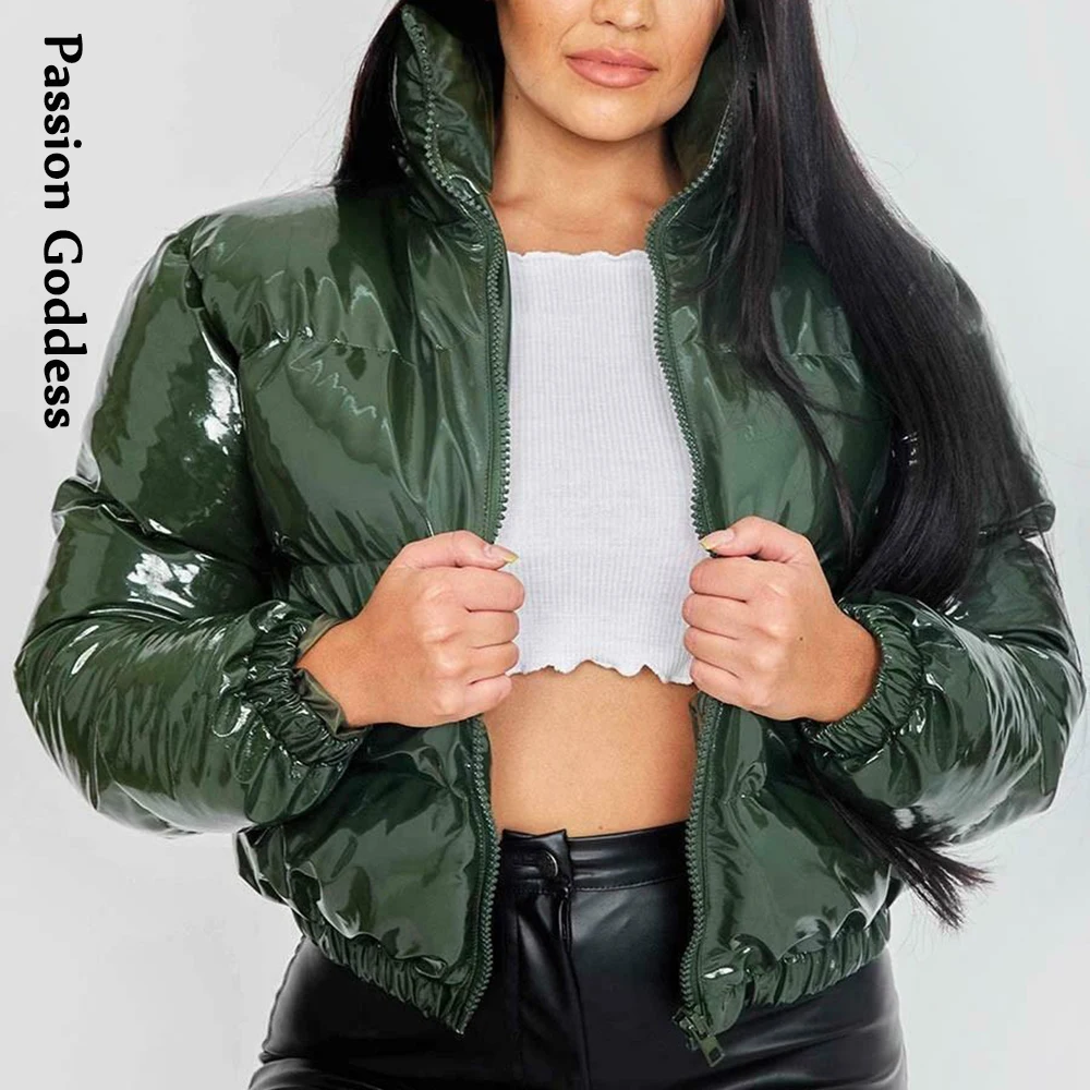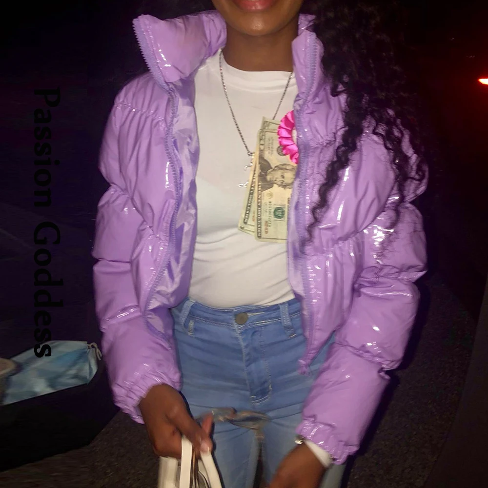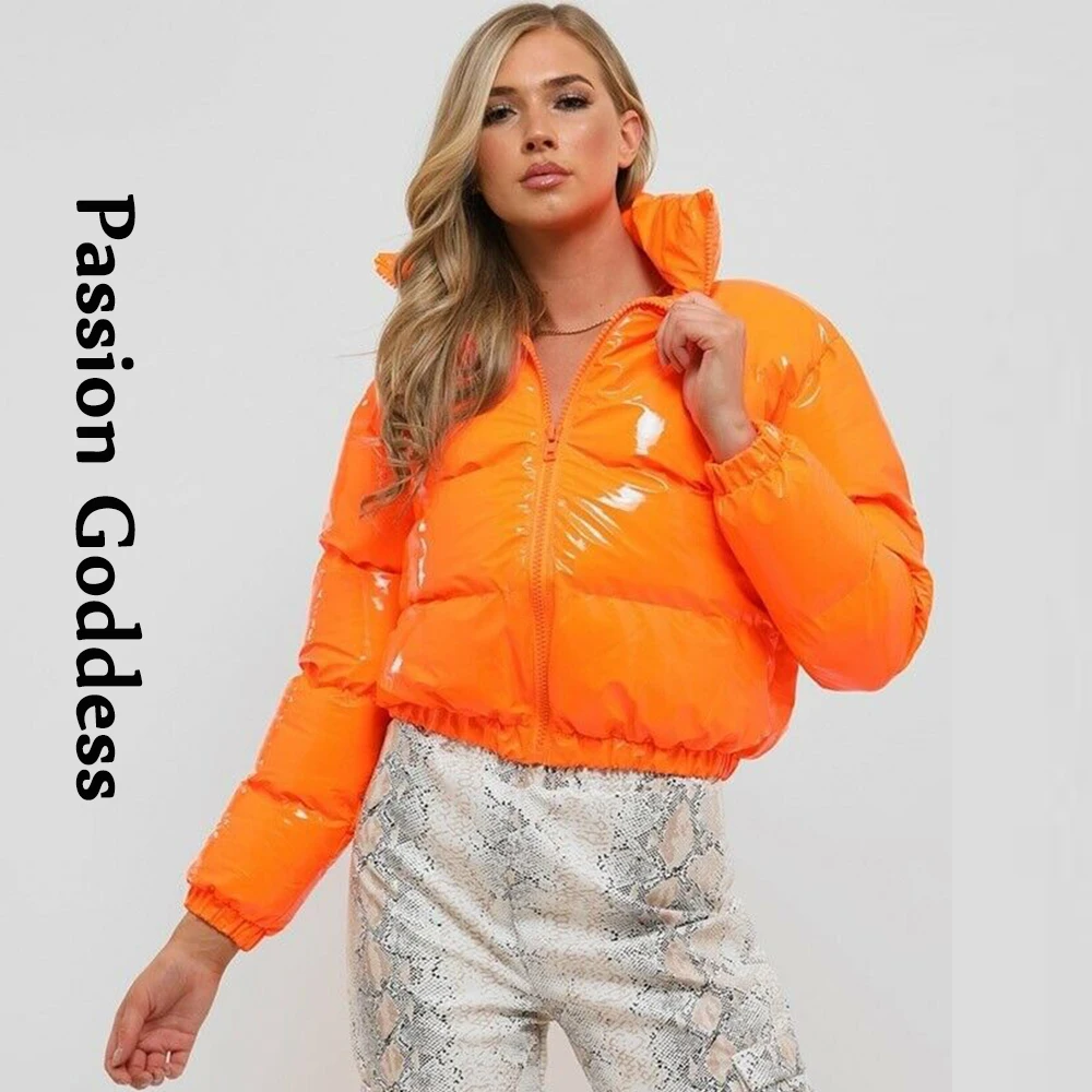 Осень-зима женские Яркие Кожаные куртки-пуховики теплая свободная милое Дутое пальто, куртки-парки пуховик со стоячим воротником, однотонные Цветные парки XXL