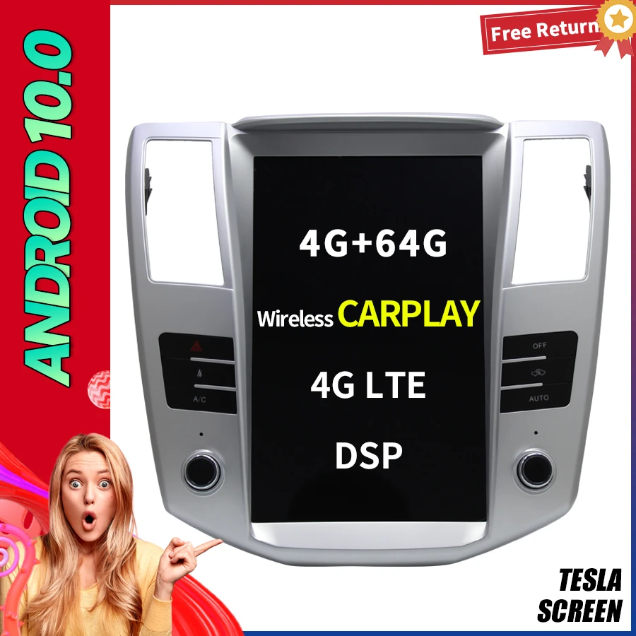 Автомобильный плеер Carplay в стиле Tesla Android 10, GPS-навигатор для Lexus RX RX300 RX330 RX350 RX400H, Магнитола, головное устройство