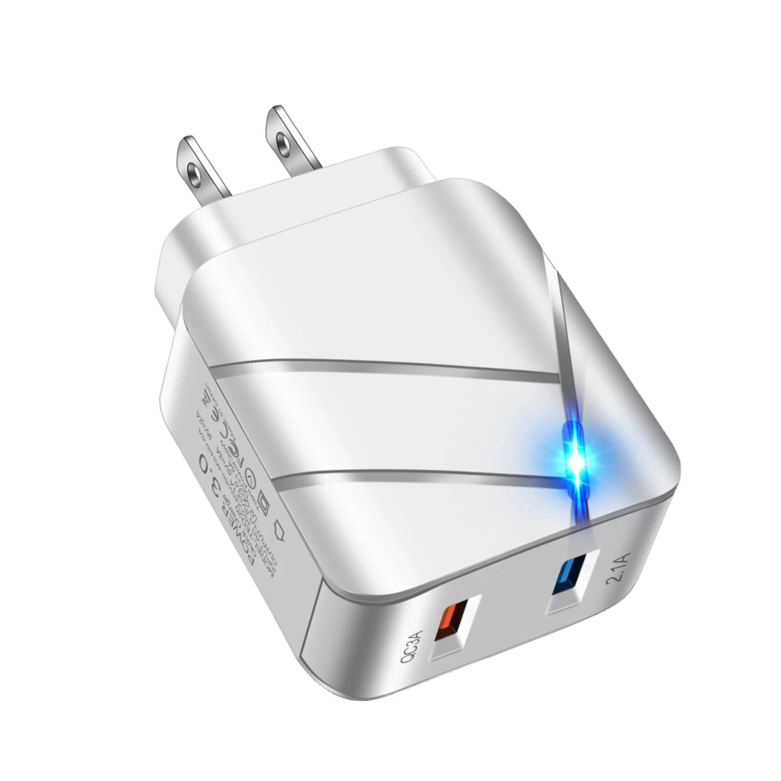 Универсальный 28 Вт QC3.0 Быстрая зарядка двойной USB порт США/ЕС Разъем для телефона зарядное устройство адаптер Характеристики: Портативное зарядное устройство отлично подходит для дома, офиса, путешествий и других помещений. С 2 портами USB, он может одновременно заряжать 2 устройства. Он совместим с большинством смартфонов, таких как iPhone, iPad, Samsung, Xiaomi, Huawei, OPPO, OnePlus, Sony, Google и camera, ПК, планшет, MP3, MP4, плеер с интерфейсом USB. Этот телефонный заряд принимает умный соответствующий ток. Встроенный смарт-чип совместим с требуемым выходом в соответствии с различными устройствами, поэтому вы можете заряжать быстро, не повреждая аккумулятор. Умный вход предотвращает перенапряжение или перегрузки по току во время зарядки, что делает вас и ваше оборудование более безопасными. Название товара: зарядное устройство для телефона Материал: АБС-пластик Входное напряжение: 100 В-240 В переменного тока, 50-60 Гц Общая мощность: 28 Вт Выход: 5 В/3,1 А (максимум) Выход USB: 5 В/2,1 А (максимум) Вилка: штепсельная вилка европейского стандарта, штепсельная вилка американского стандарта (опционально) Сертификация: CCC, CE, PSE Особенности: два usb-порта, световой светильник, быстрая зарядка Размеры: 8,5 см x 4,3 см x 2,7 см/3,35 "x 1,69" x 1,06 "(прибл.) Примечания: Благодаря светильник и экрана Цвет Товара может быть s светильник ly отличается из-за характеристик монитора компьютера. Возможны незначительные отклонения в размерах из-за различных измерений вручную. Посылка включает в себя: (телефон не входит в комплект) Зарядное устройство для телефона-1 шт.