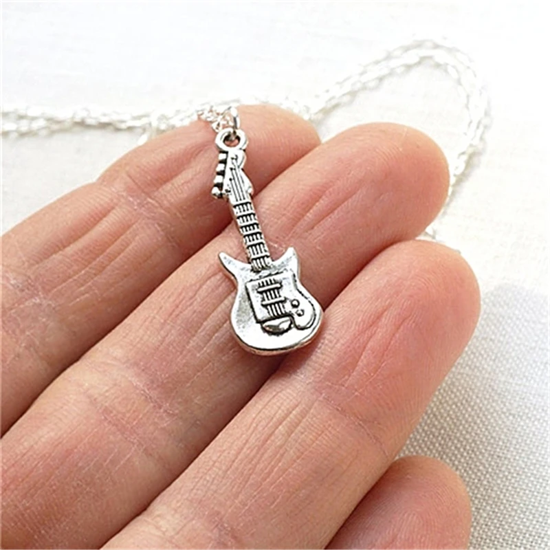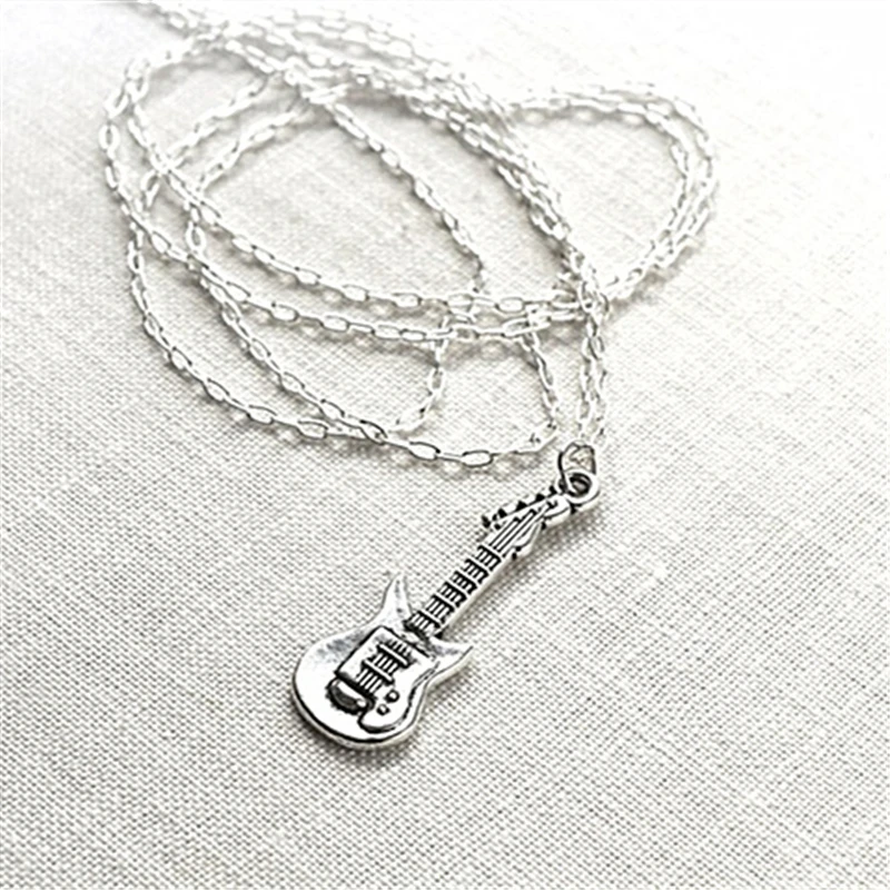 Маленькое ожерелье для электрической гитары, серебряная цепочка, изящный музыкальный инструмент, очаровательное минималистичное ювелирное изделие, подарок для музыканта