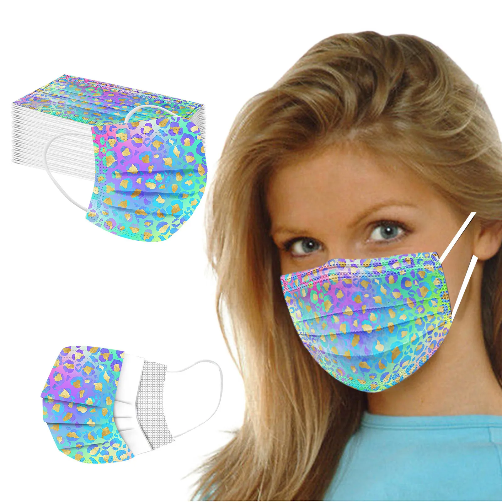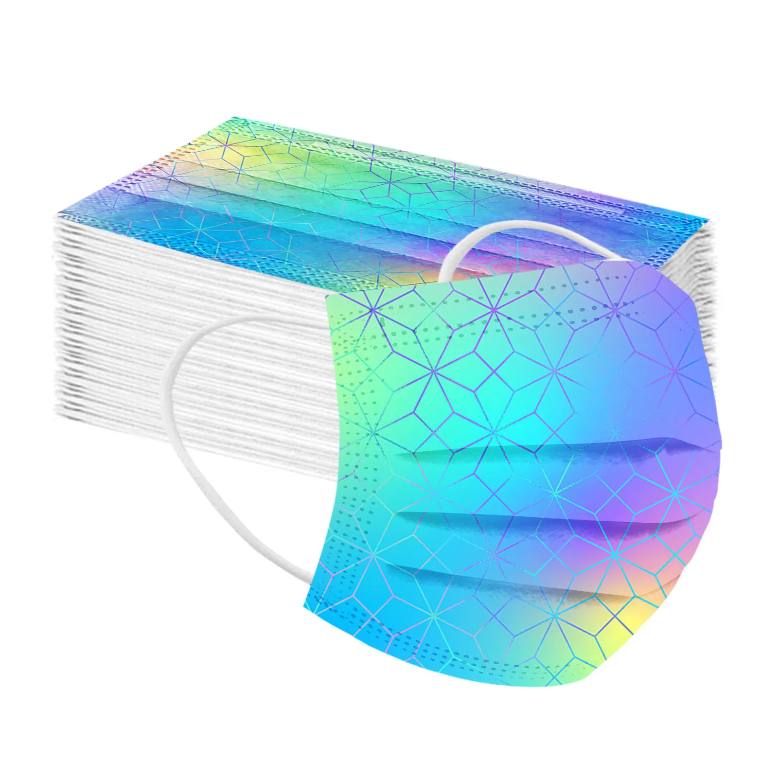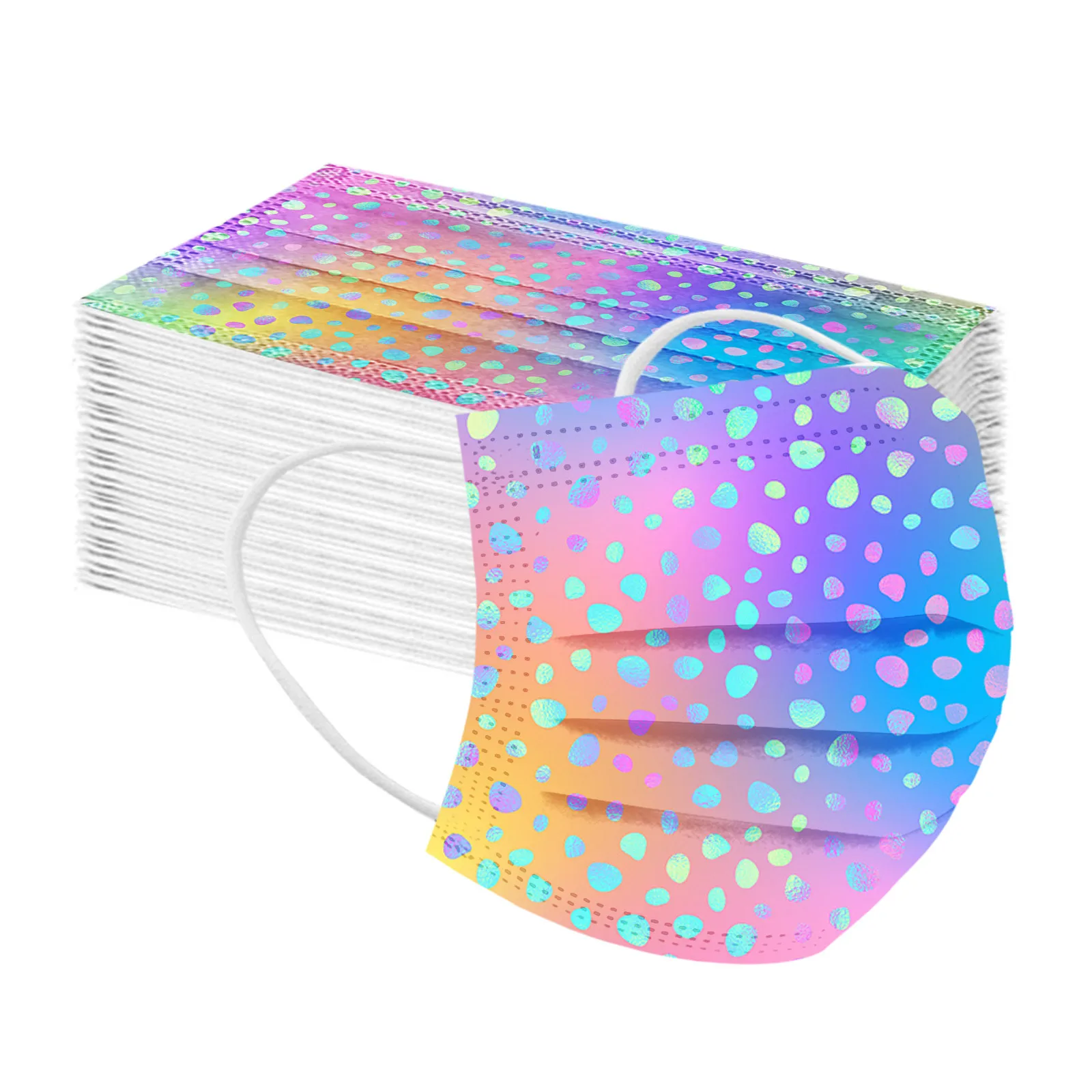 Маска для взрослых, 50 шт., маска для мужчин и женщин, маска с градиентным принтом, одноразовая маска для лица, промышленная 3-слойная маска с петлями для ушей, для детей