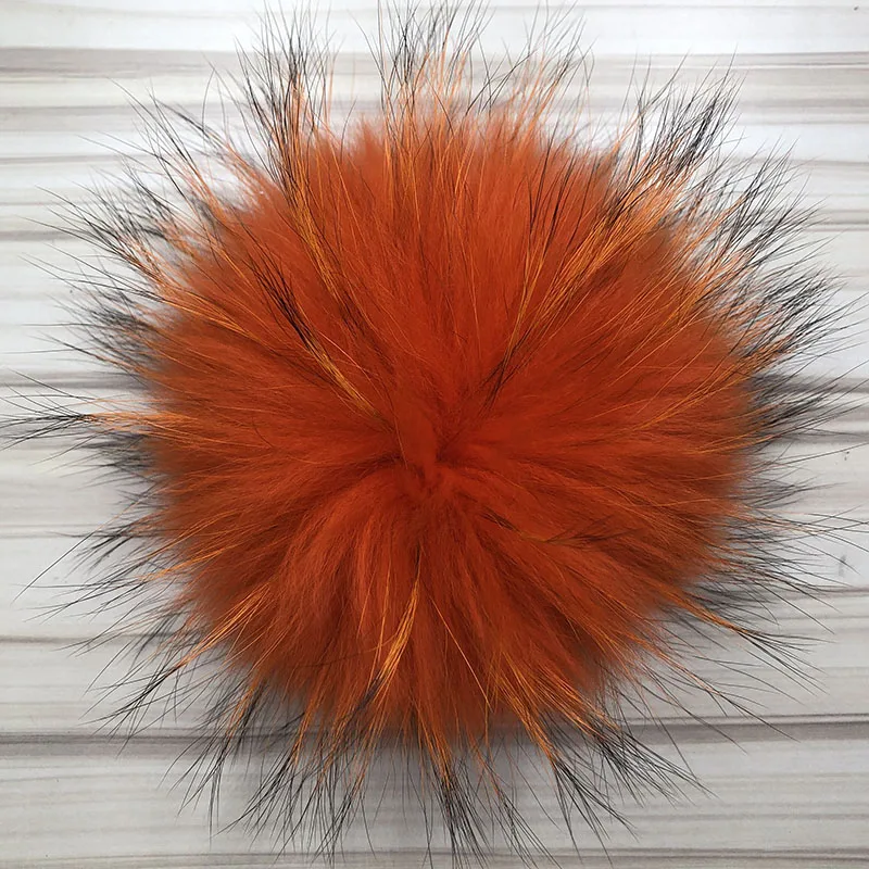 Роскошный помпон из меха енота на заказ, шапка из 100% натурального Лисьего меха, помпон из меха енота, большой оранжевый помпон ручной работы с пряжкой, оптовая продажа