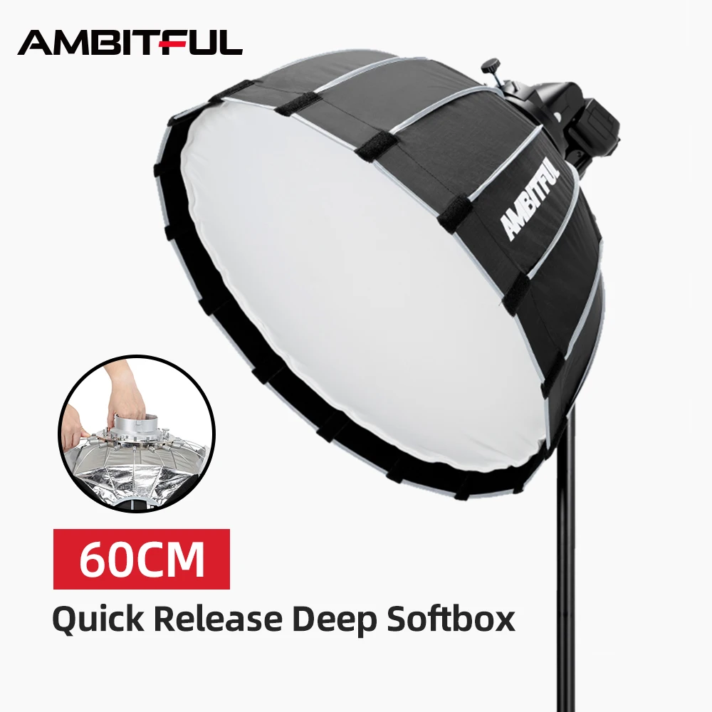 Портативный параболический софтбокс AMBITFUL P60 60 см, быстрая установка, для вспышки Bowens Profoto Elinchrom
