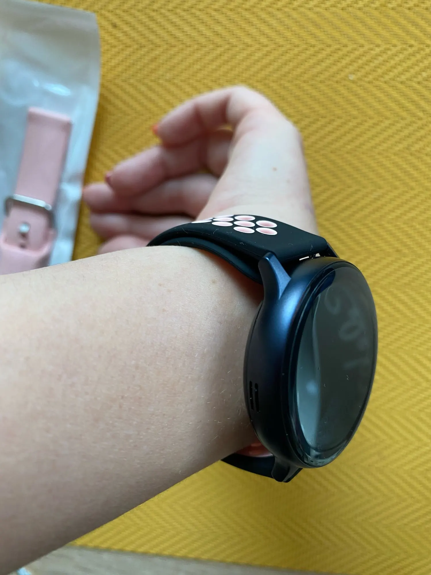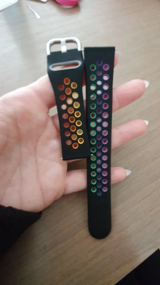 La correa esta genial , lo único es que es muy larga, y a la hora de ajustar me da la vuelta entera a la mano