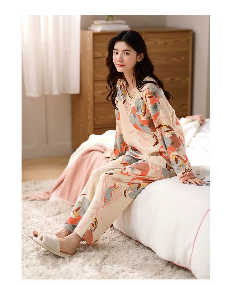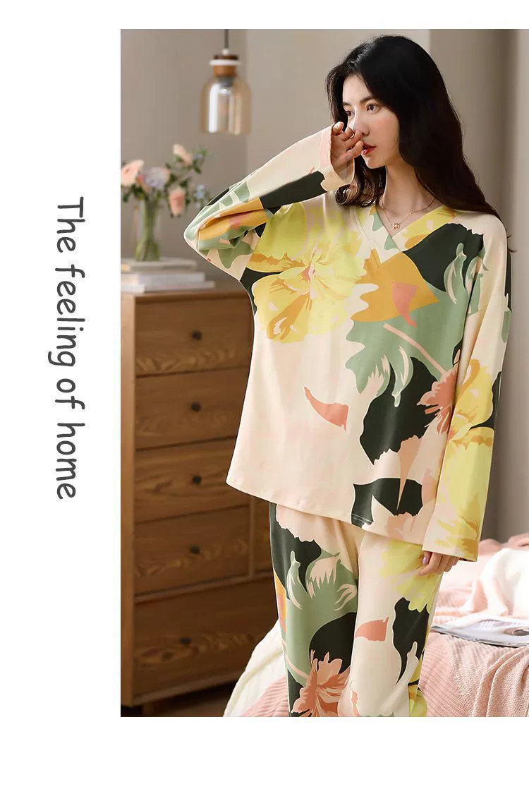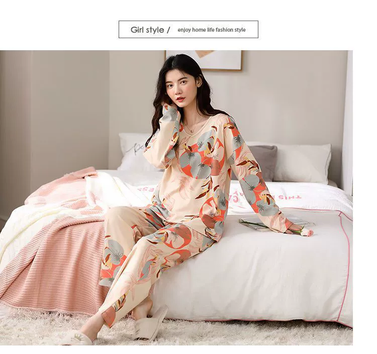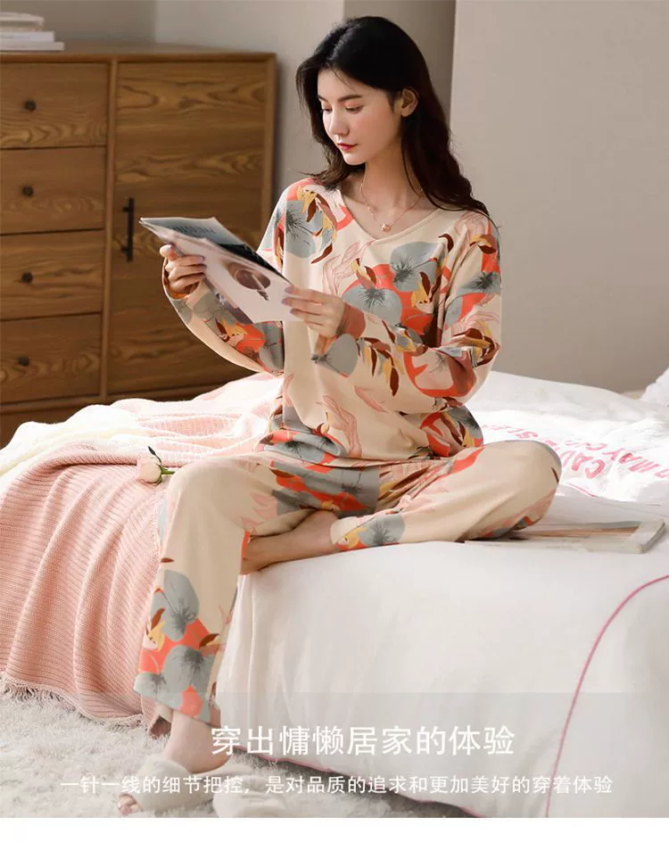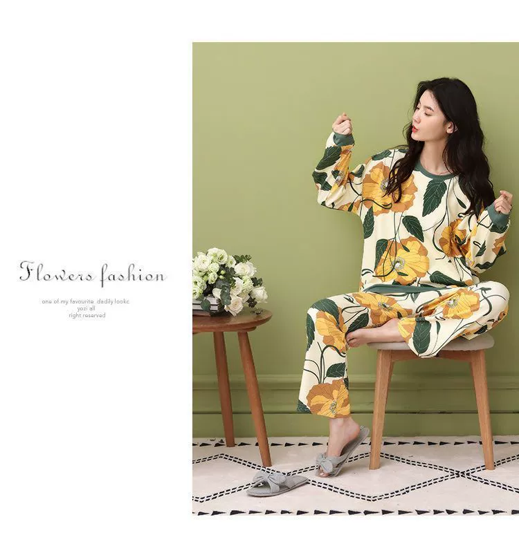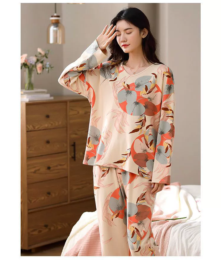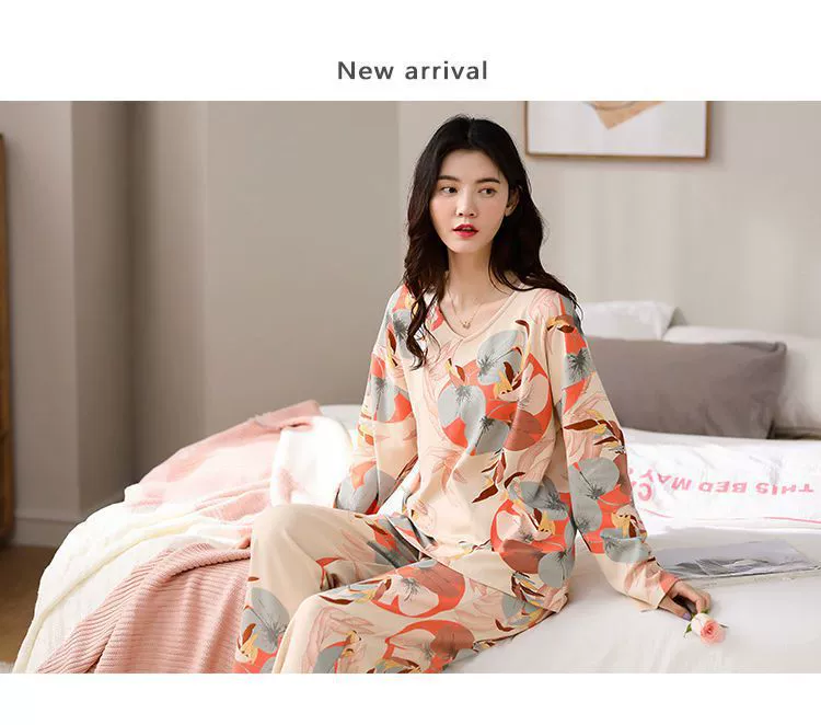 Пижама женская Трикотажная хлопковая, с длинным рукавом, весна-осень, M-XXXL