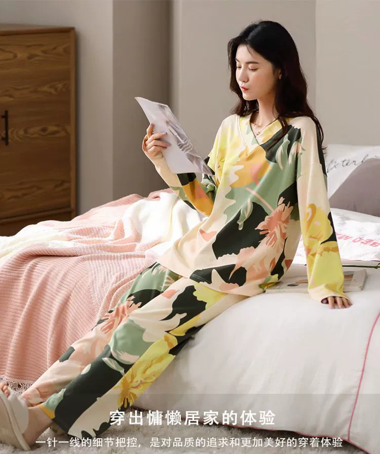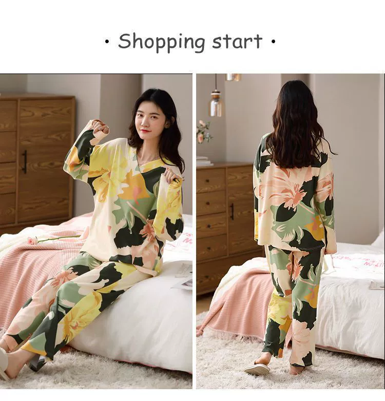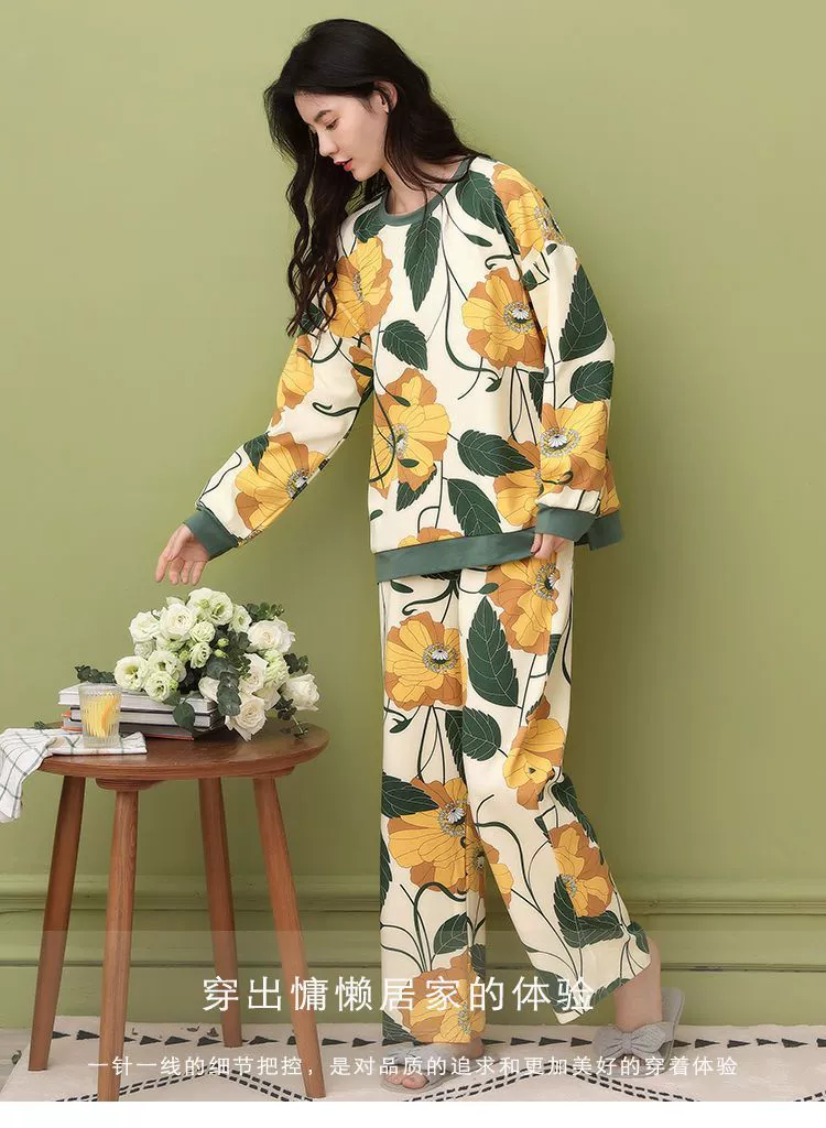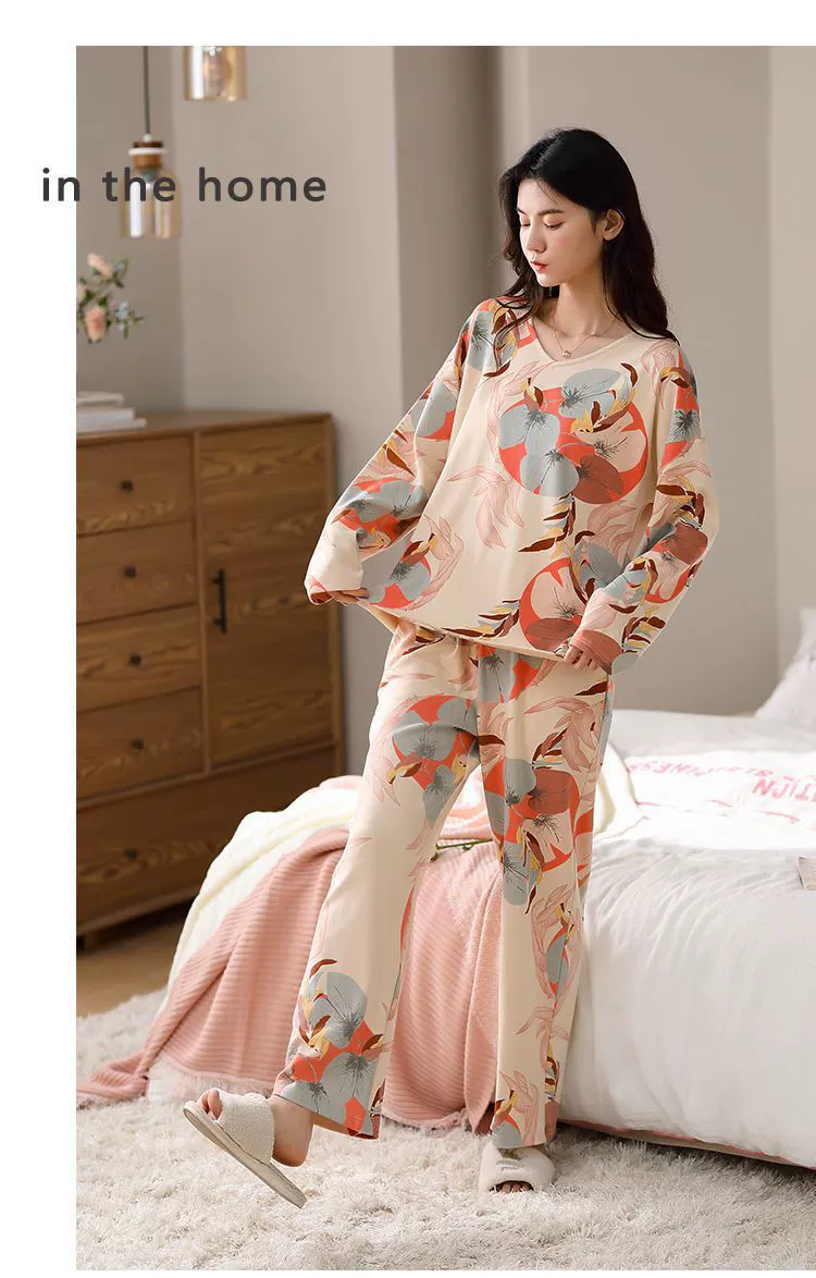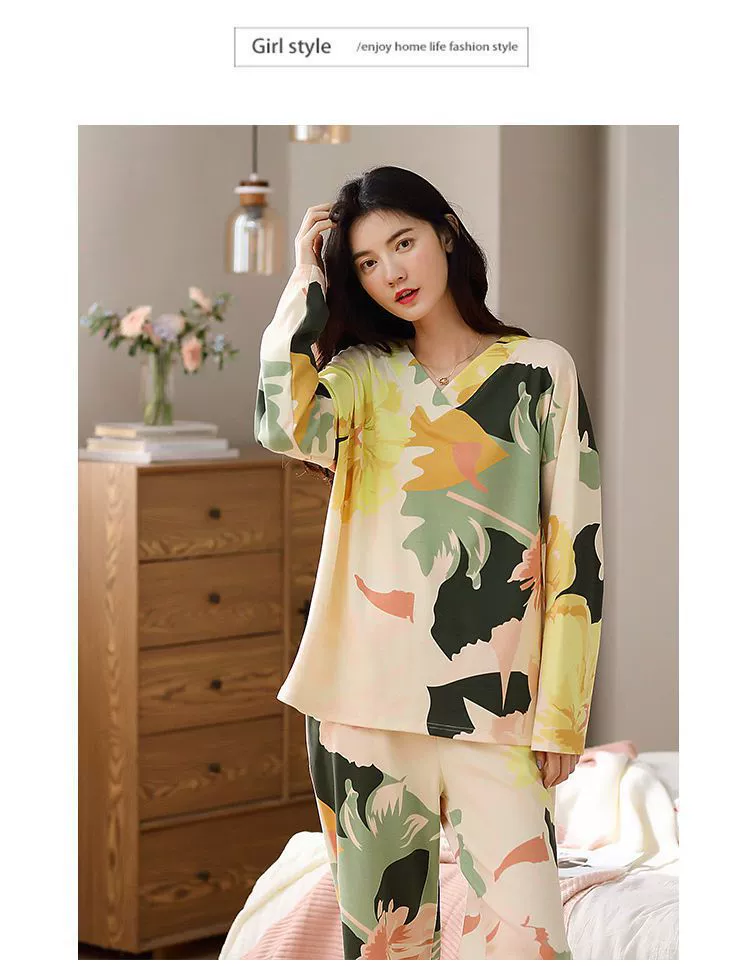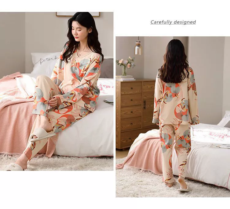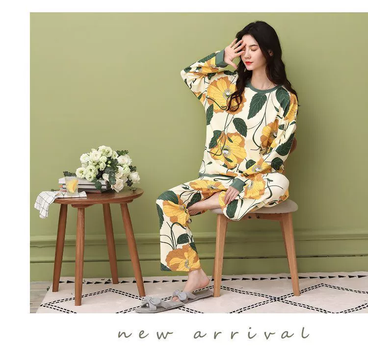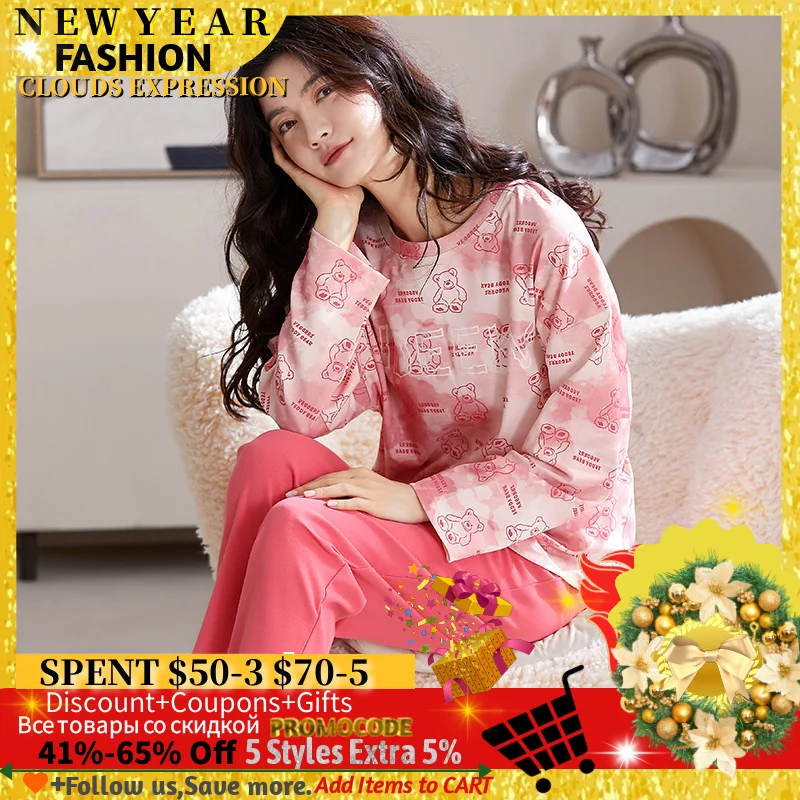 Пижама женская Трикотажная хлопковая, с длинным рукавом, весна-осень, M-XXXL