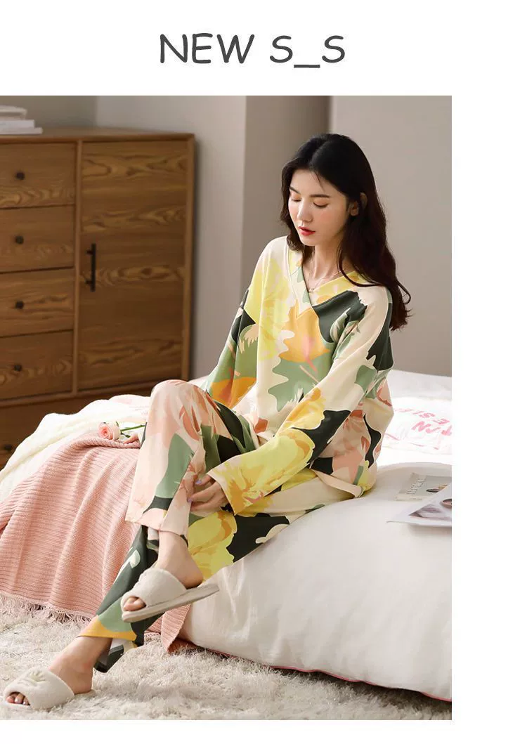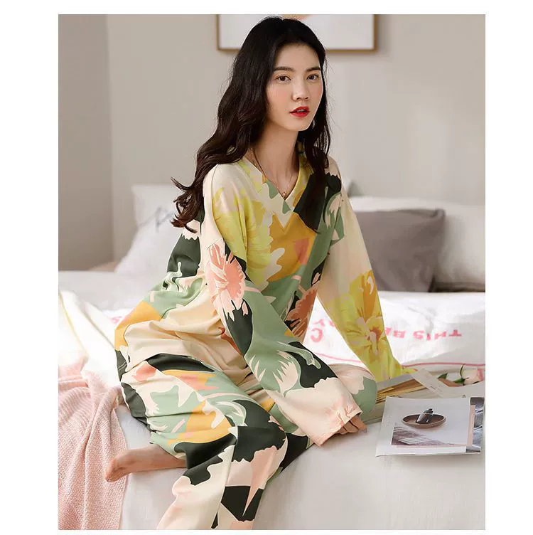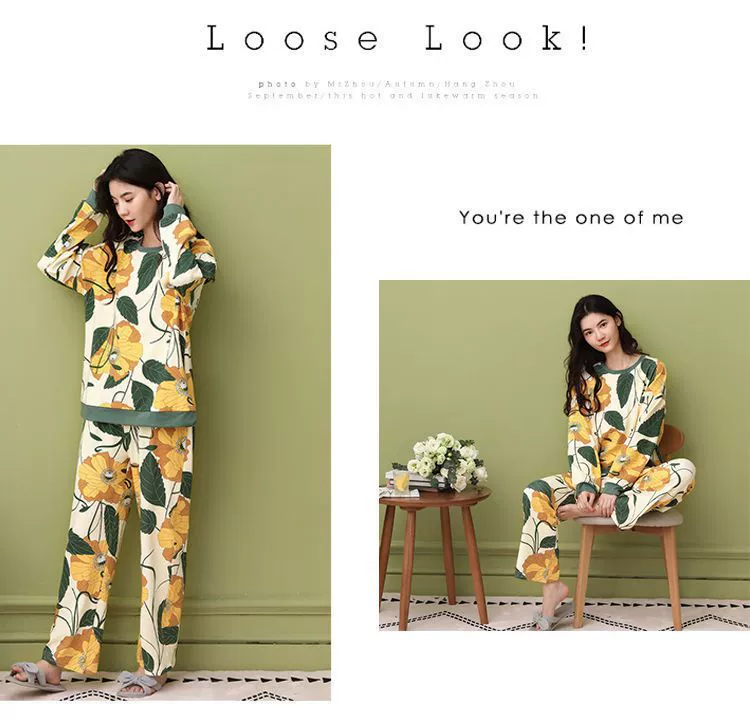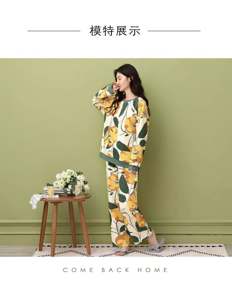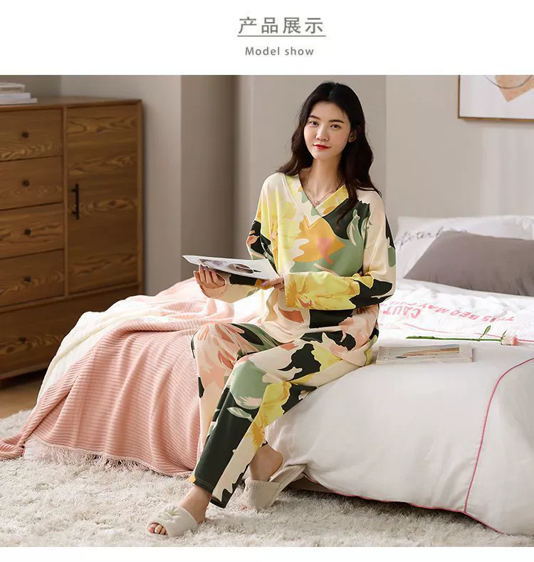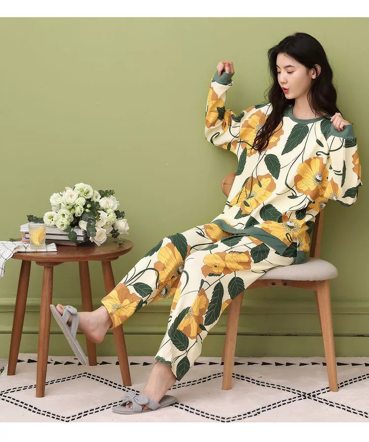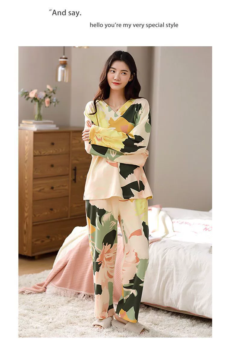 Пижама женская Трикотажная хлопковая, с длинным рукавом, весна-осень, M-XXXL