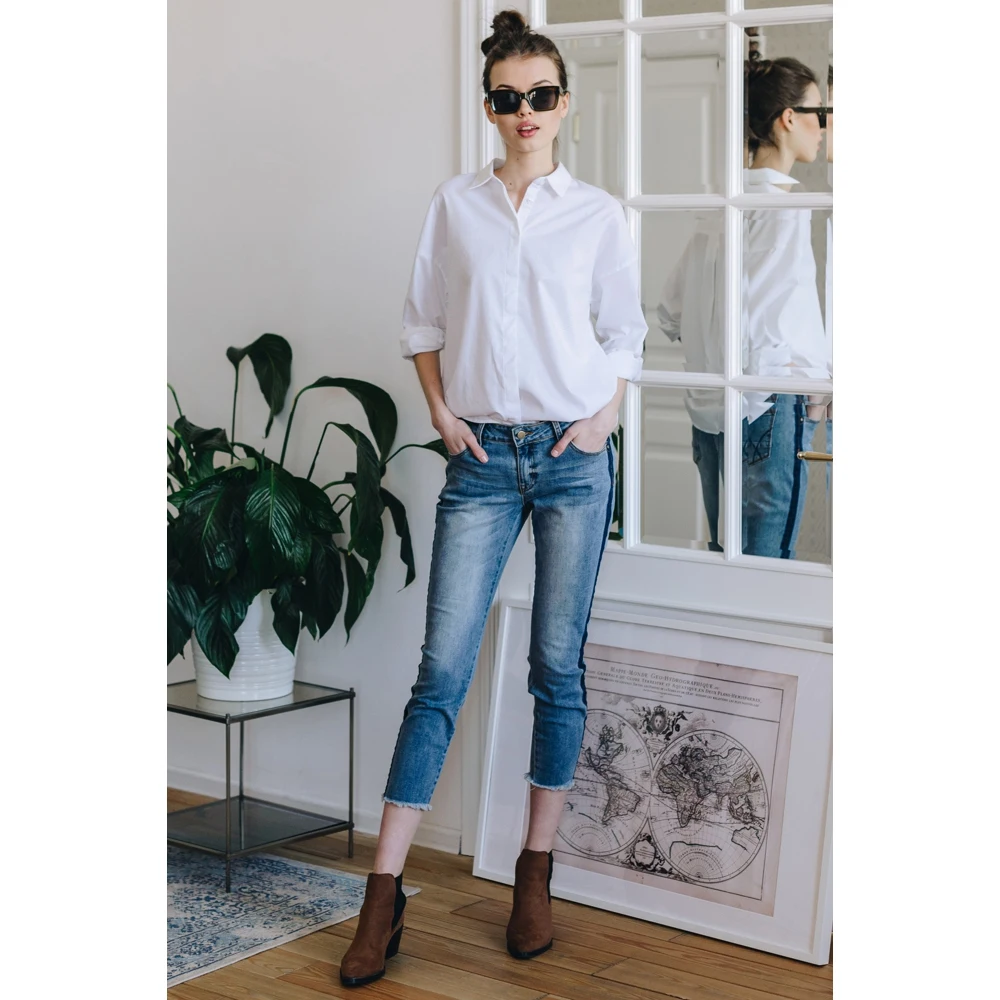 Укороченные женские джинсы с лампасами Baon B309012