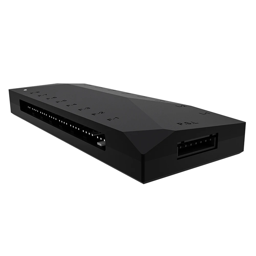Характеристика:1. 8 групп источников мощности с ШИМ питания + 5V 3-контактный ARGB интерфейс, поддержка синхронных c световыми эффектами и другими условиями и PWM регулятором скорости2. Интерфейс ARGB: 8 интерфейсов могут выводить + 5 В ARGB светильник3. Интерфейс SATA: мощность SATA + 12 В прямой вход, достаточный источник питания4. Интерфейс P.S.L: сигнал PWM и входной интерфейс ARGB сигнала5. Интерфейс ШИМ: 8 интерфейсов поддерживают управление скоростью ШИМ, F-1 интерфейс (белый) предоставляет информацию об оборотах, поэтому сначала Подключите белый интерфейс F16. SATA кабель питания прямой выход: использование SATA кабель питания прямой выход, проще и эффективнее, и поддерживает стабильную производительность выход в условиях высокой нагрузки используется коллегами с 10 комплектами PWM вентиляторов, обеспечивая безопасностьПримечание:1. Возможны незначительные отклонения в размере из-за ручного измерения, различных методов измерения и инструментов.2. Изображение может не отражать фактический цвет изделия из-за различных фотографирования светильник, угол и дисплей монитора.