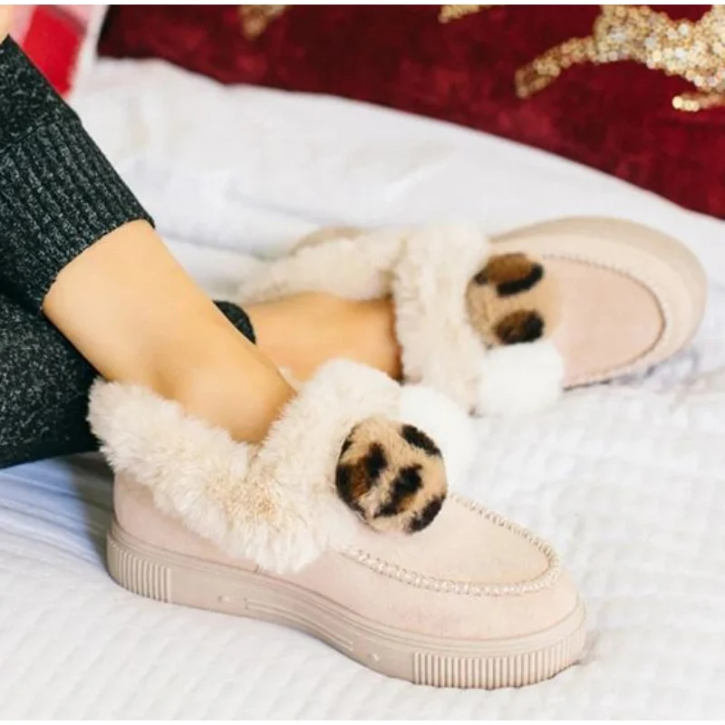 Женские лоферы MCCKLE на плоской подошве, зимние плюшевые дамские повседневные Нескользящие теплые Мокасины, женские удобные ботинки на плоской подошве для снега