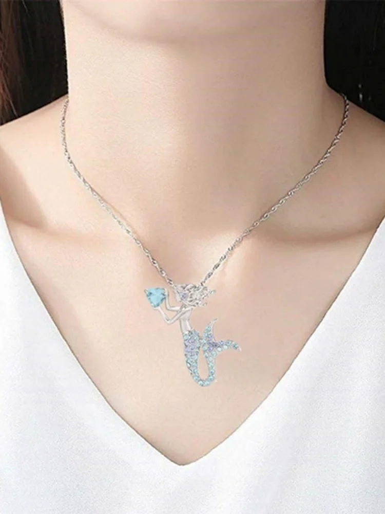 Ожерелье с подвеской в виде русалки для женщин и девушек, винтажное ожерелье со сказочным океаном и морем, Пляжная цепочка до ключиц, бижутерия, аксессуары, чокер, 1 шт.