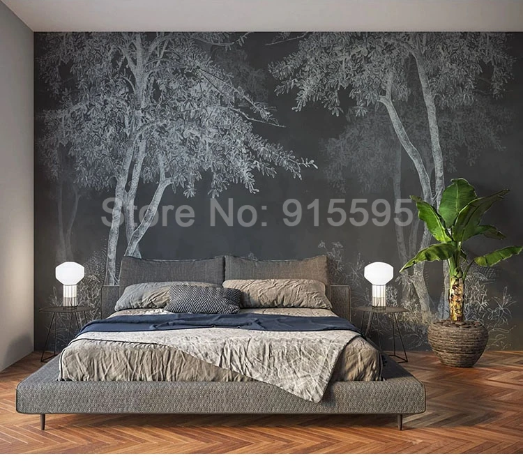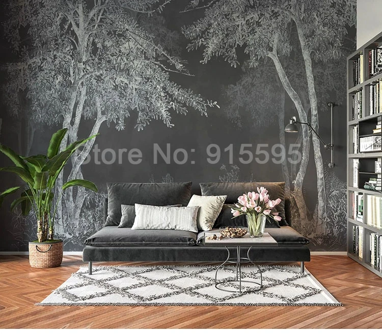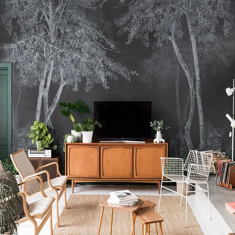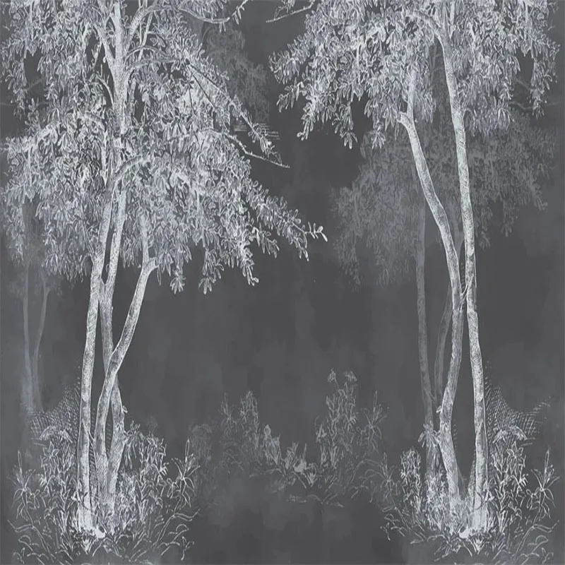 3D обои в стиле ретро, Ностальгический черный и белый лес, художест...
