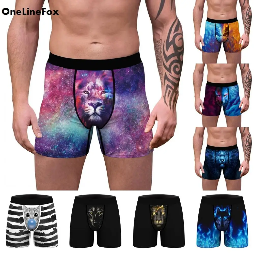 Трусы-боксеры OneLineFox мужские, нижнее белье с объемным принтом животных, с выпуклым гульфиком, шорты для геев