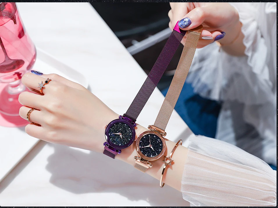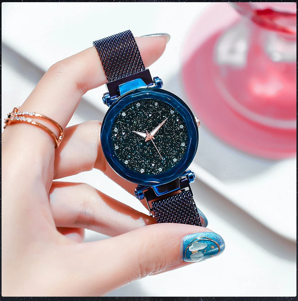 Часы женские кварцевые с магнитной застежкой, модные повседневные наручные, с изображением звездного неба