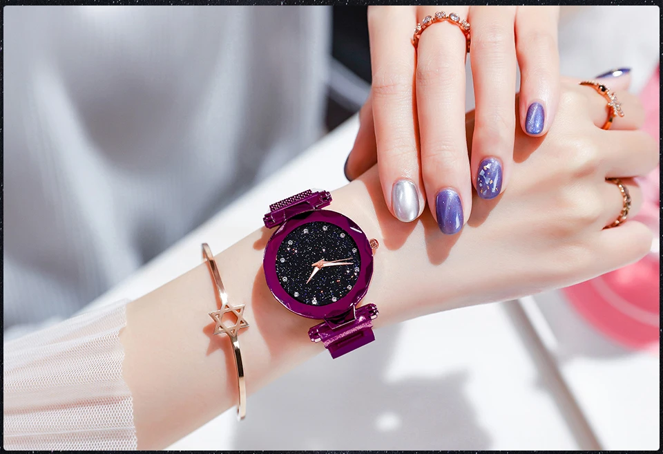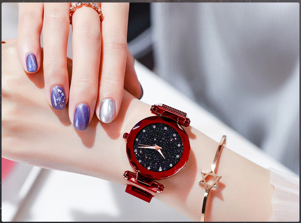 Женские часы-браслет повседневные Модные Кварцевые женские наручные часы Звездное небо магнитные часы женские часы