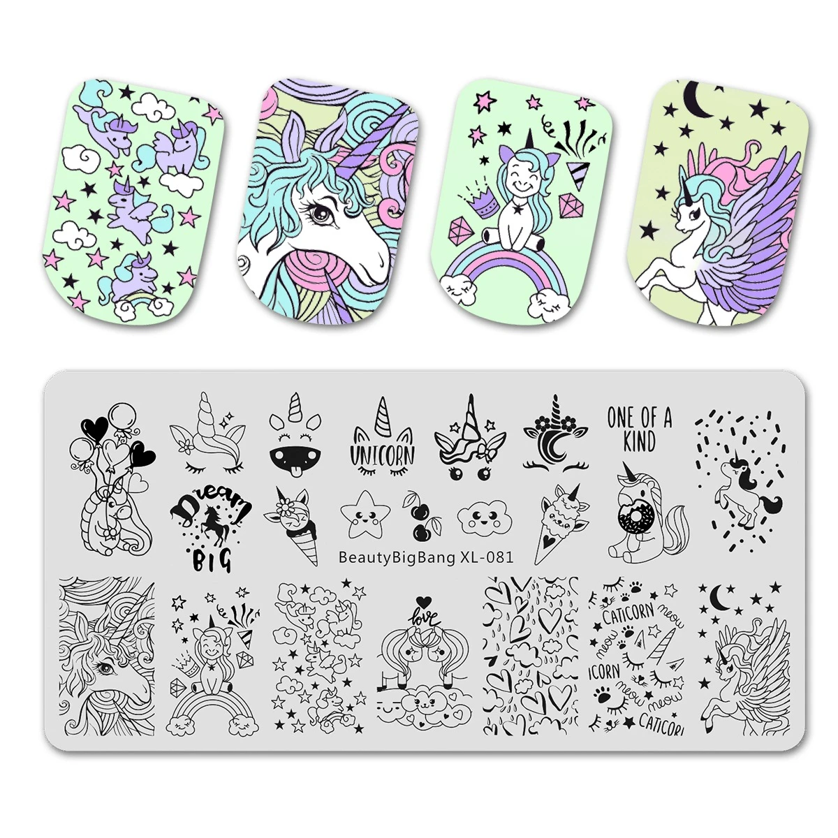 Штамповочные пластины BeautyBigBang 6*12 см, милый Единорог, облако, звезда, мороженое, шаблон для дизайна ногтей, инструмент, аксессуары, шаблон штампа