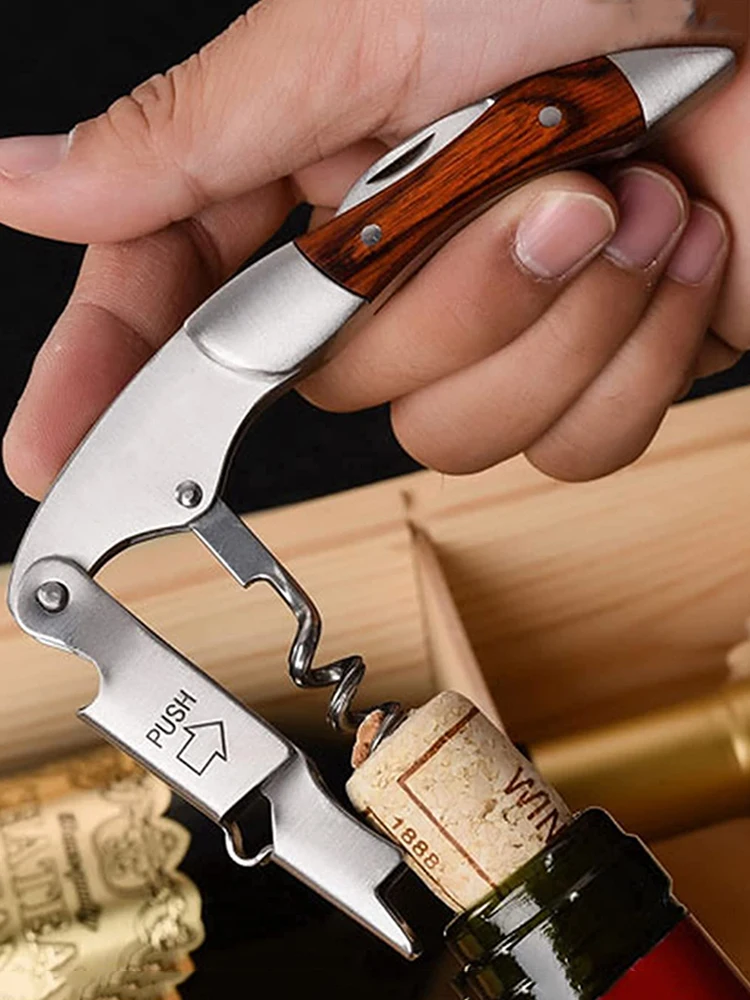 Профессиональный штопор для вина, штопор с твердой деревянной ручкой для вина с открывалкой для пивных бутылок и фольга