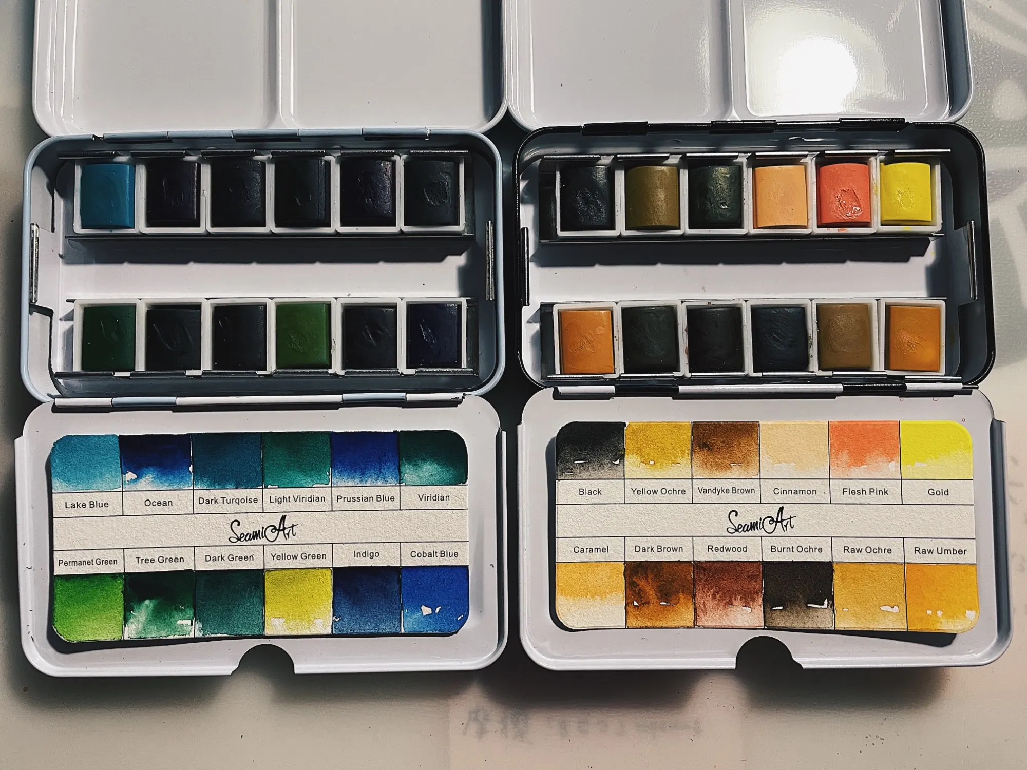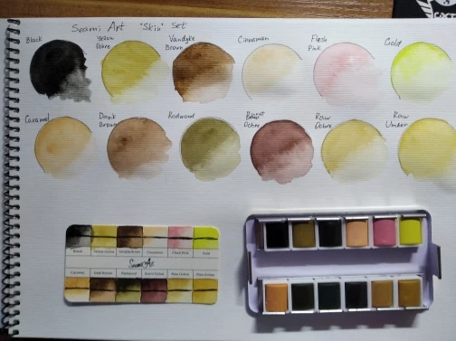 Я получил не тот комплект, но продавец договорился предоставить большую скидку на второй комплект. Тот, что я получил, это Морской набор, и он милый! Мне нравится олово, и сами краски также достаточно хороши для набросков. Информация о пигментах отсутствует, поэтому это не художественная продукция художника, но по-прежнему приятно играть. Цвета яркие и пигментированные. Обновлю этот отзыв, когда я получу набор «кожа» :)