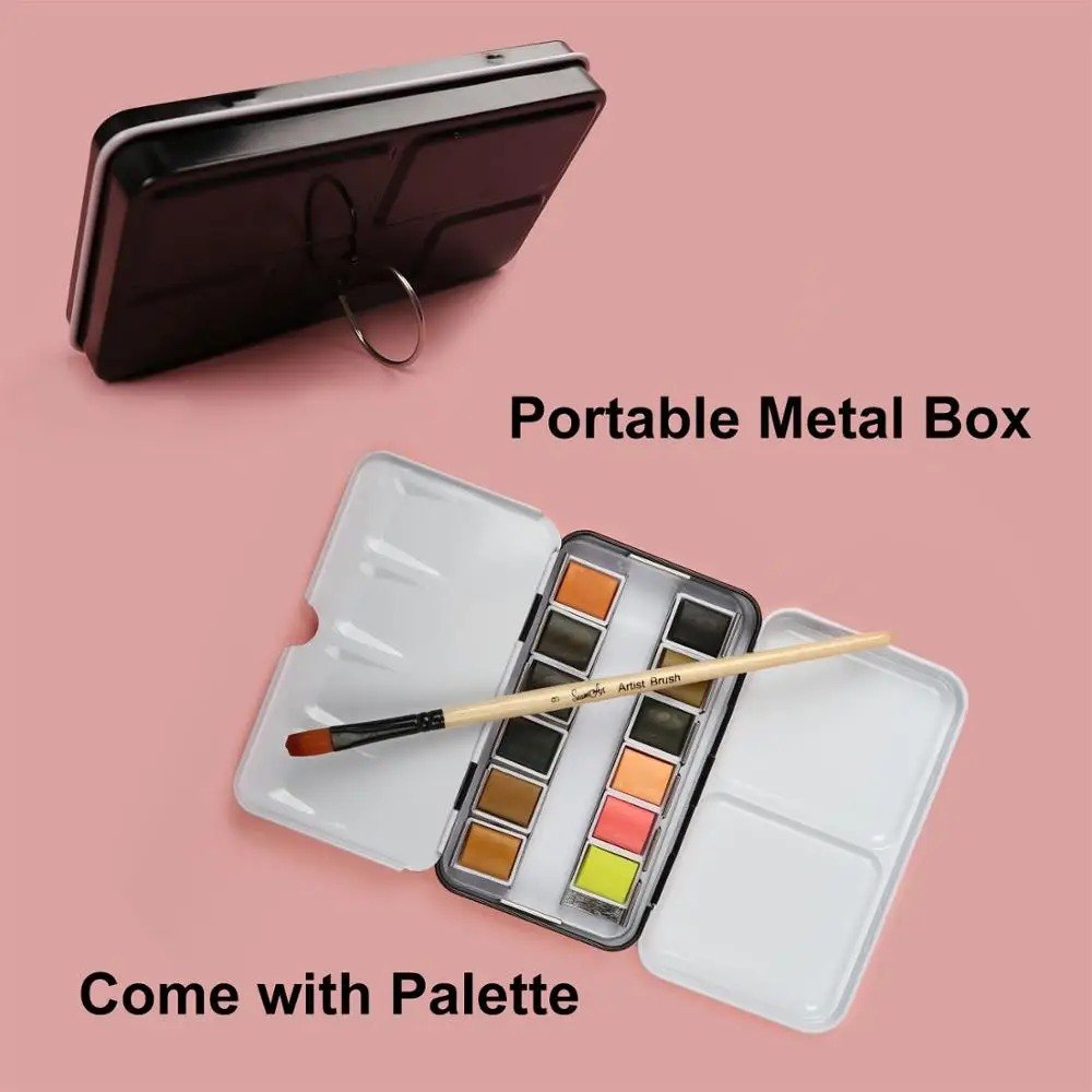 Жестяная коробка SeamiArt, 12 цветов, однотонная, акварельная, для рисования и портретов, товары для рукоделия