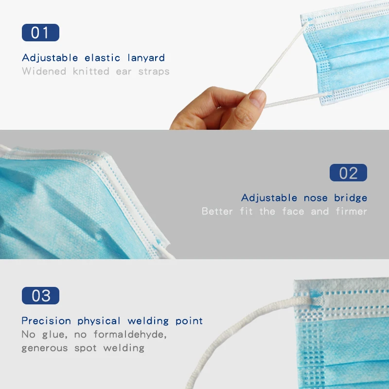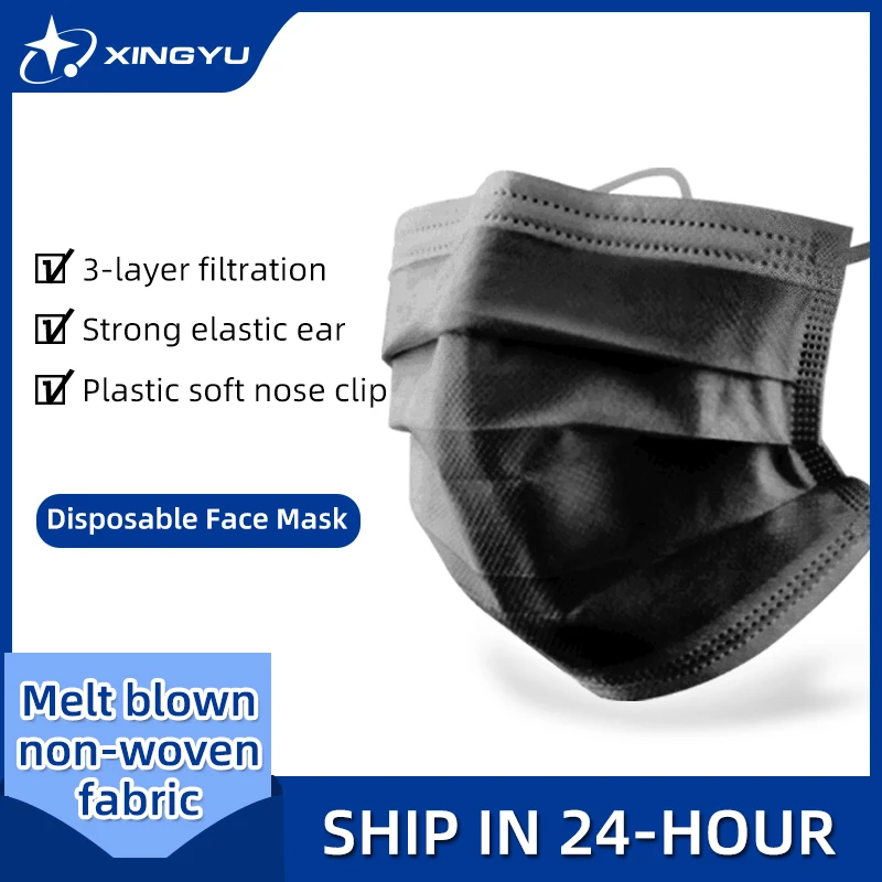 Маска одноразовая непромокаемая с 3-слойным фильтром, 50-200 шт.