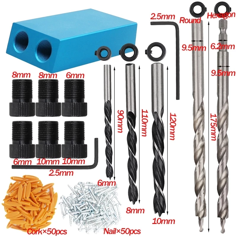 Набор кондукторов для сверления, кондуктор с косым отверстием для деревообработки, сменные направляющие для сверления 6, 8, 10 мм, магнитные инструменты для столярных работ