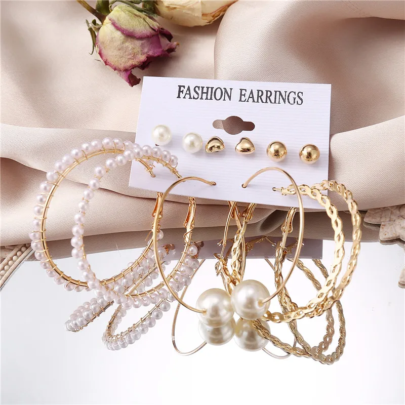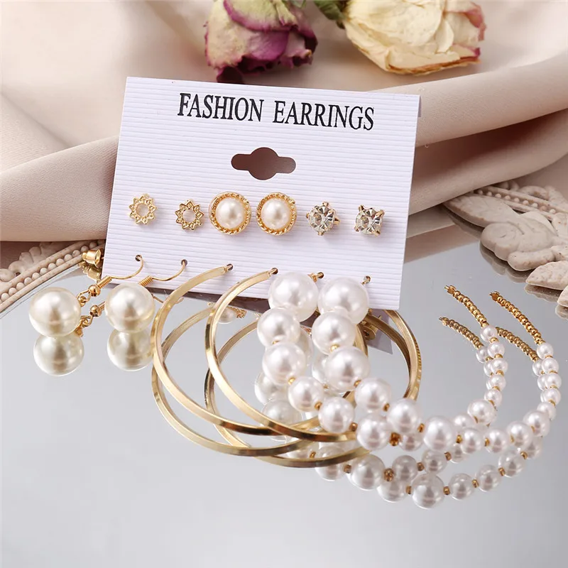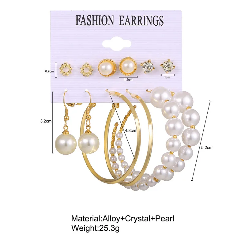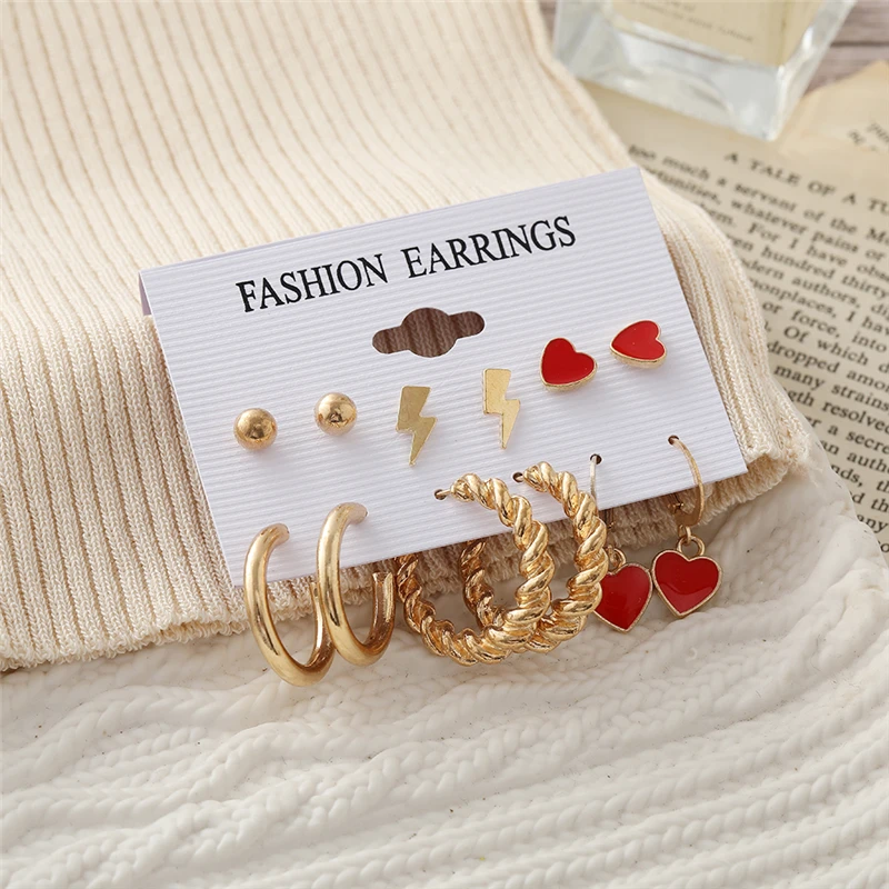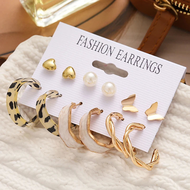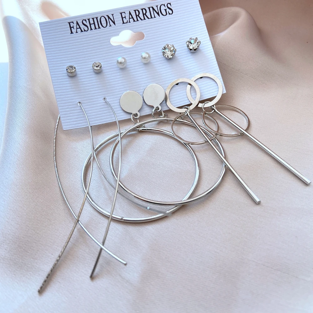 Шесть пар сережек серебристого цвета. Три пары винтов и три пары большего размера. Все в порядке, спасибо.