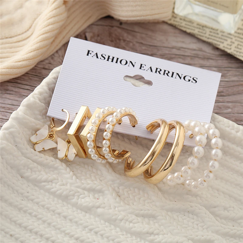 Серьги-подвески женские, с жемчугом, 17 км, набор золотых крестов, длинные, с бабочкой, висячие, ювелирные изделия, 2021