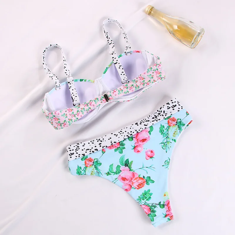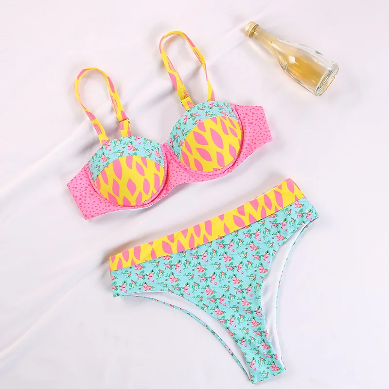 Miyouj купальники с пэчворком и принтом из двух частей купальный костюм с лямкой на шее женский купальник с высокой талией 2020 комплект бикини с пуш-ап Сексуальная Пляжная одежда