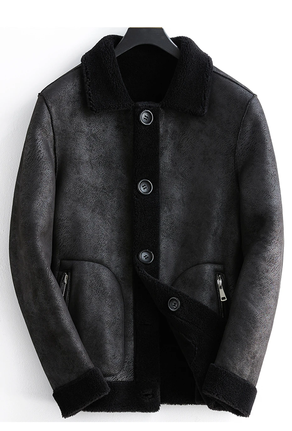 Мужская мотоциклетная куртка из натуральной овечьей шкуры, жакет с ...