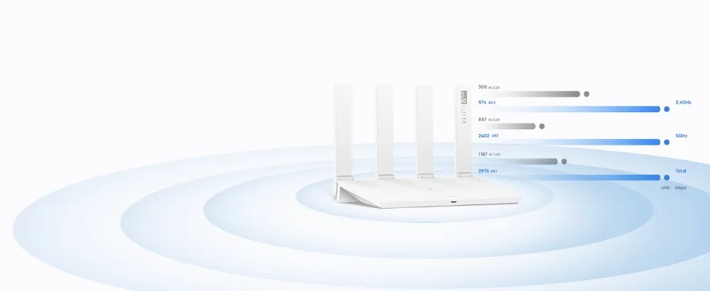 Скорость беспроводной связи до 2976 Мбит/с (2,4 ГГц: 574 Мбит/с; Wi-Fi 5 ГГц: 2402 Мбит/с)