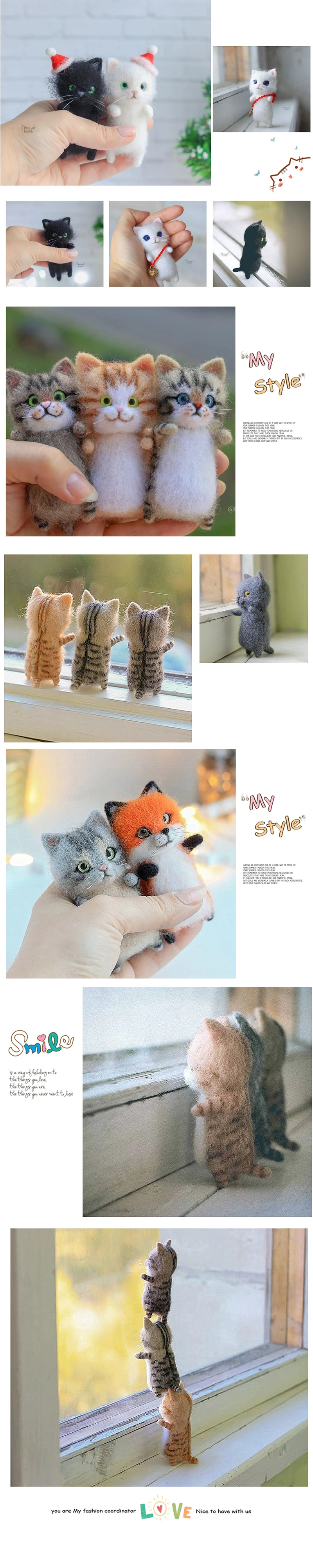 Незавершенный модный сиамский соколиный Боярышник Tabby Civet Cat Kitty шерстяная кукла женский набор игл из фетра ручной работы пакет DIY подарок для детей