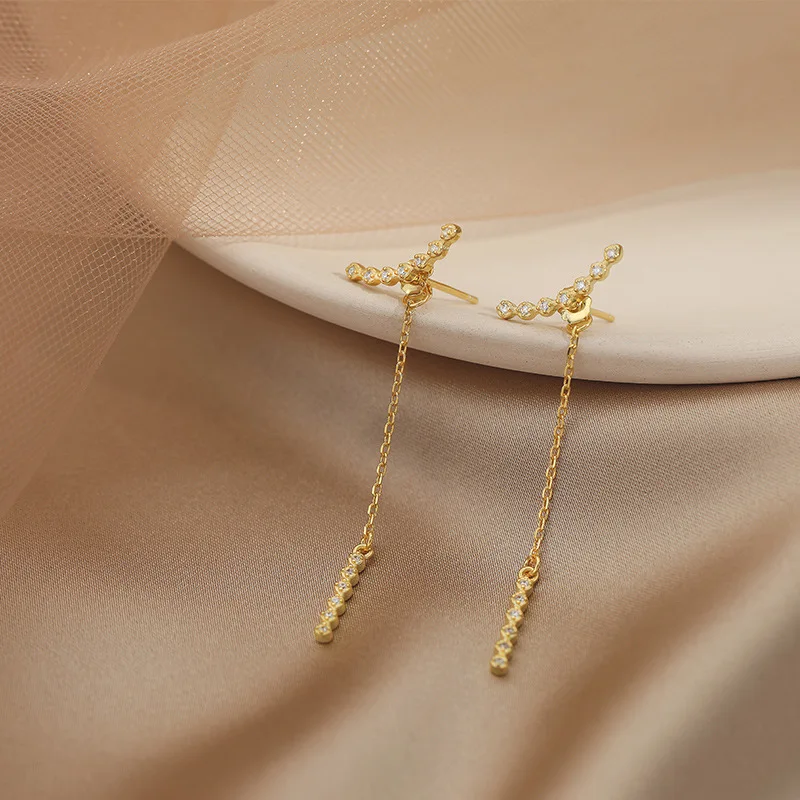Модные длинные корейские очаровательные серьги-подвески с кисточками и кристаллами для женщин, модные свадебные украшения eh604