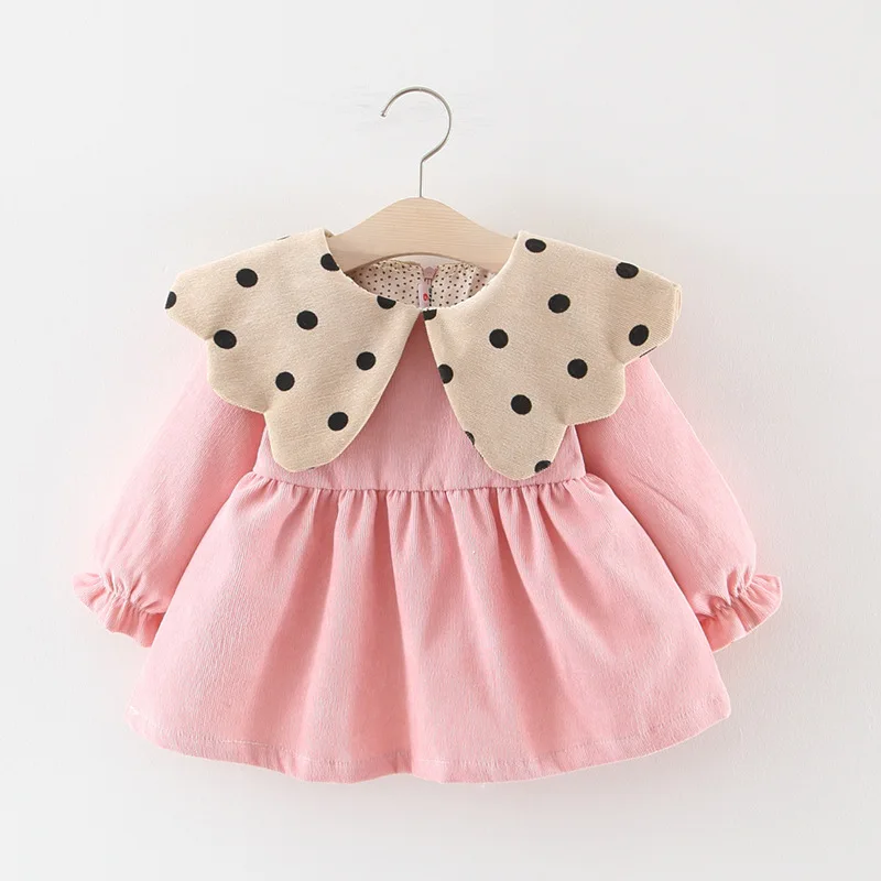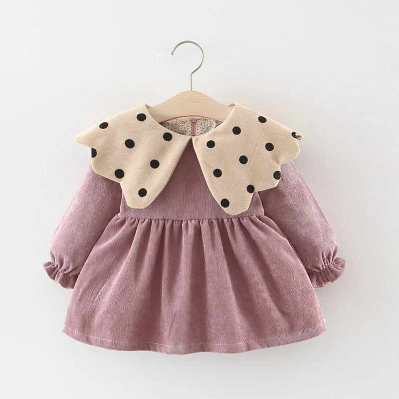 Осень-зима Детское платье для маленьких девочек однотонное детское Цвет в горошек, платье принцессы, платье на день рождения Рождественский костюм для новорожденных вечерние платья